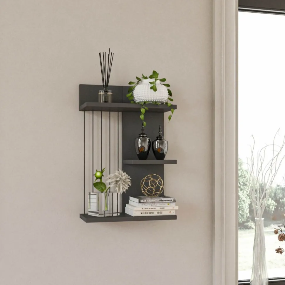 Vägghylla av melaminbelagd spånskiva.