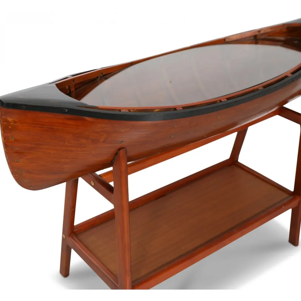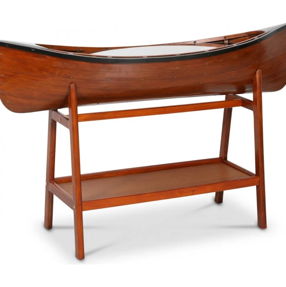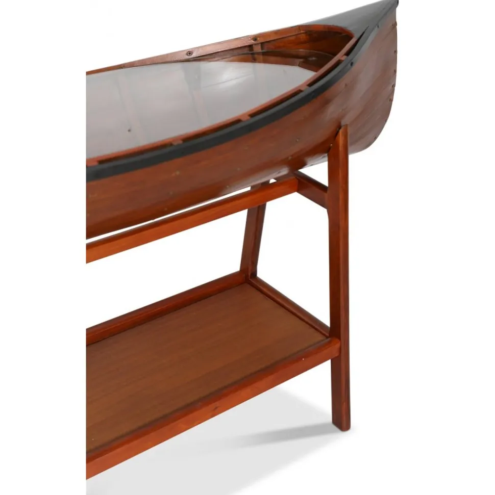 Vår marina serie ”Old Sailor” består av möbler och interiör i marint tema. Sideboard i form av en båt. Tillverkad av massiv trä, målad som en klassisk båt. Glasskiva täcker båten där man kan ställa prydnadssaker.