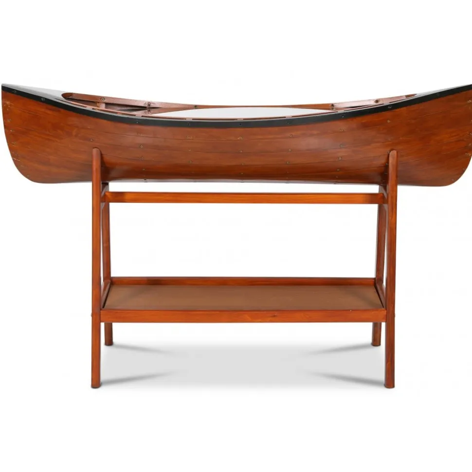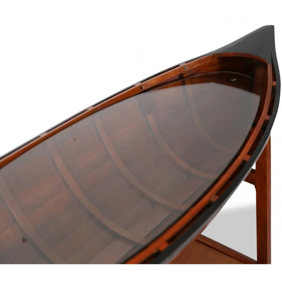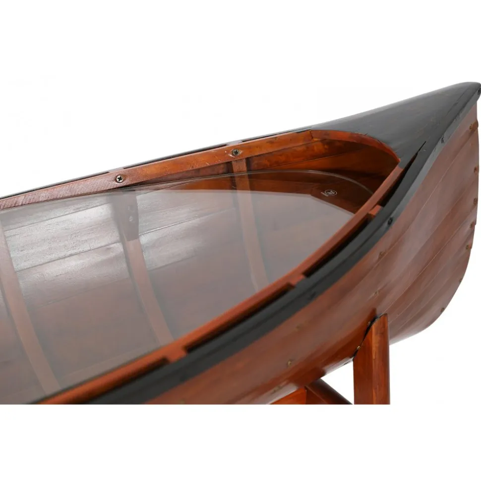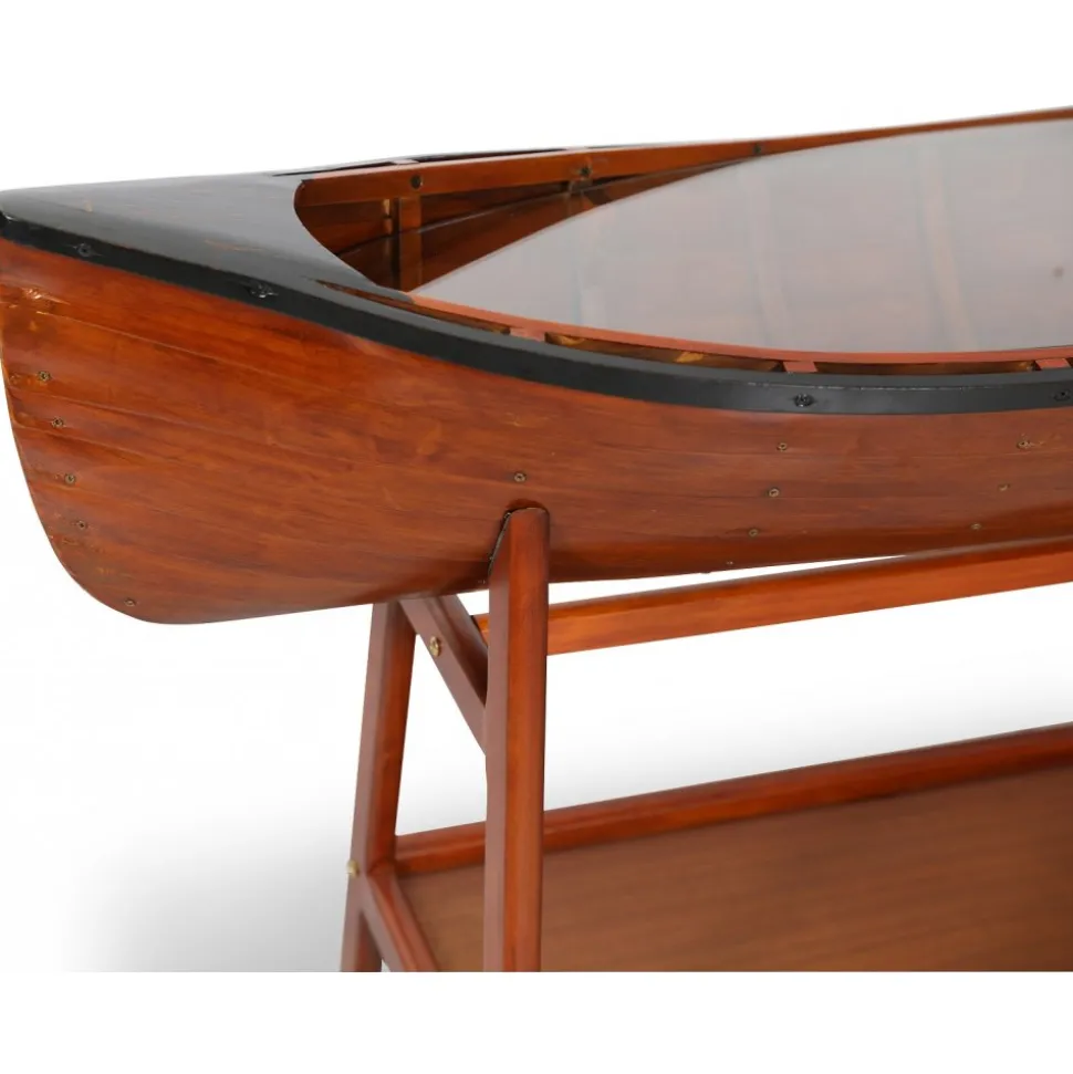 Vår marina serie ”Old Sailor” består av möbler och interiör i marint tema. Sideboard i form av en båt. Tillverkad av massiv trä, målad som en klassisk båt. Glasskiva täcker båten där man kan ställa prydnadssaker.