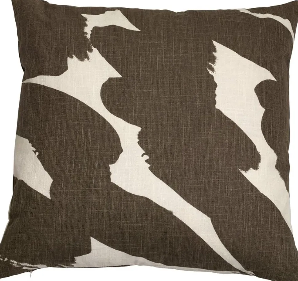 Stort tryckt bomullskuddfodral i behagliga jordnära färger.