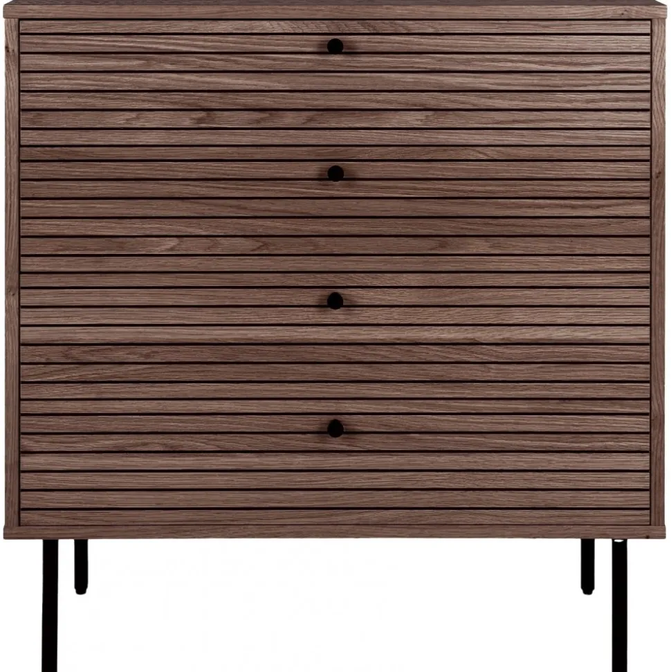 Byrå av MDF och ekfanér med ben av stål.