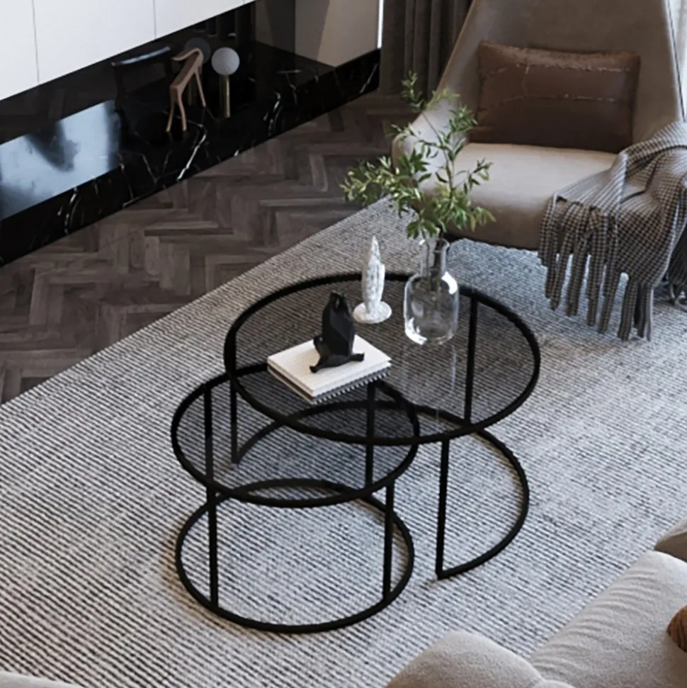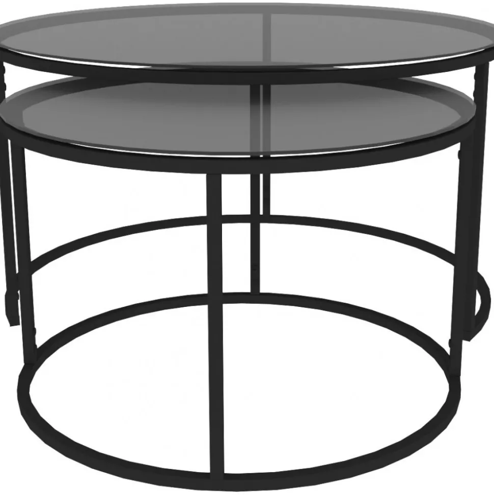 Satsbord av metall med bordsskiva av tempererat glas. 2 st.