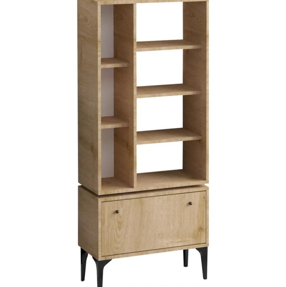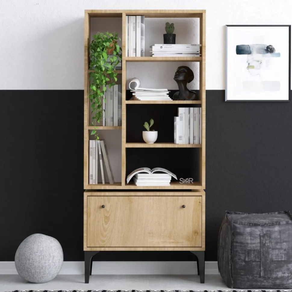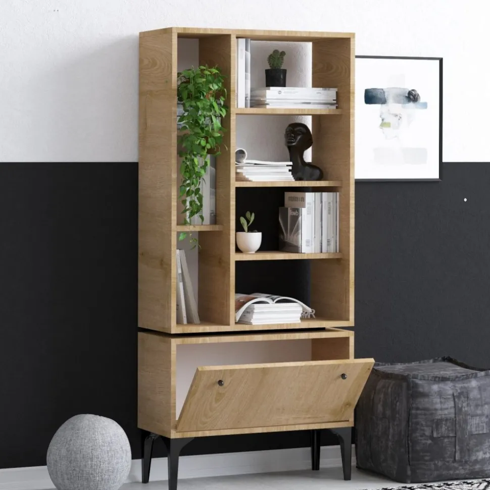 Bokhylla av spånskiva.