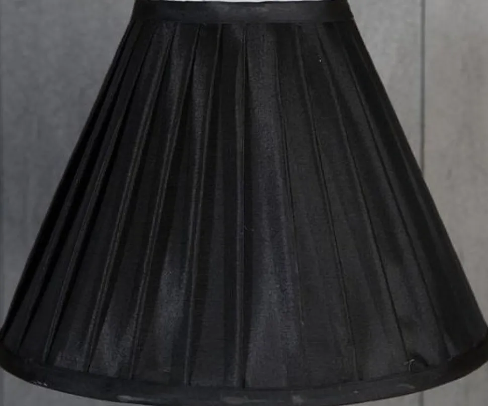 Siden i svart veckad sidenliknande tyg. Passar E14 fattning.