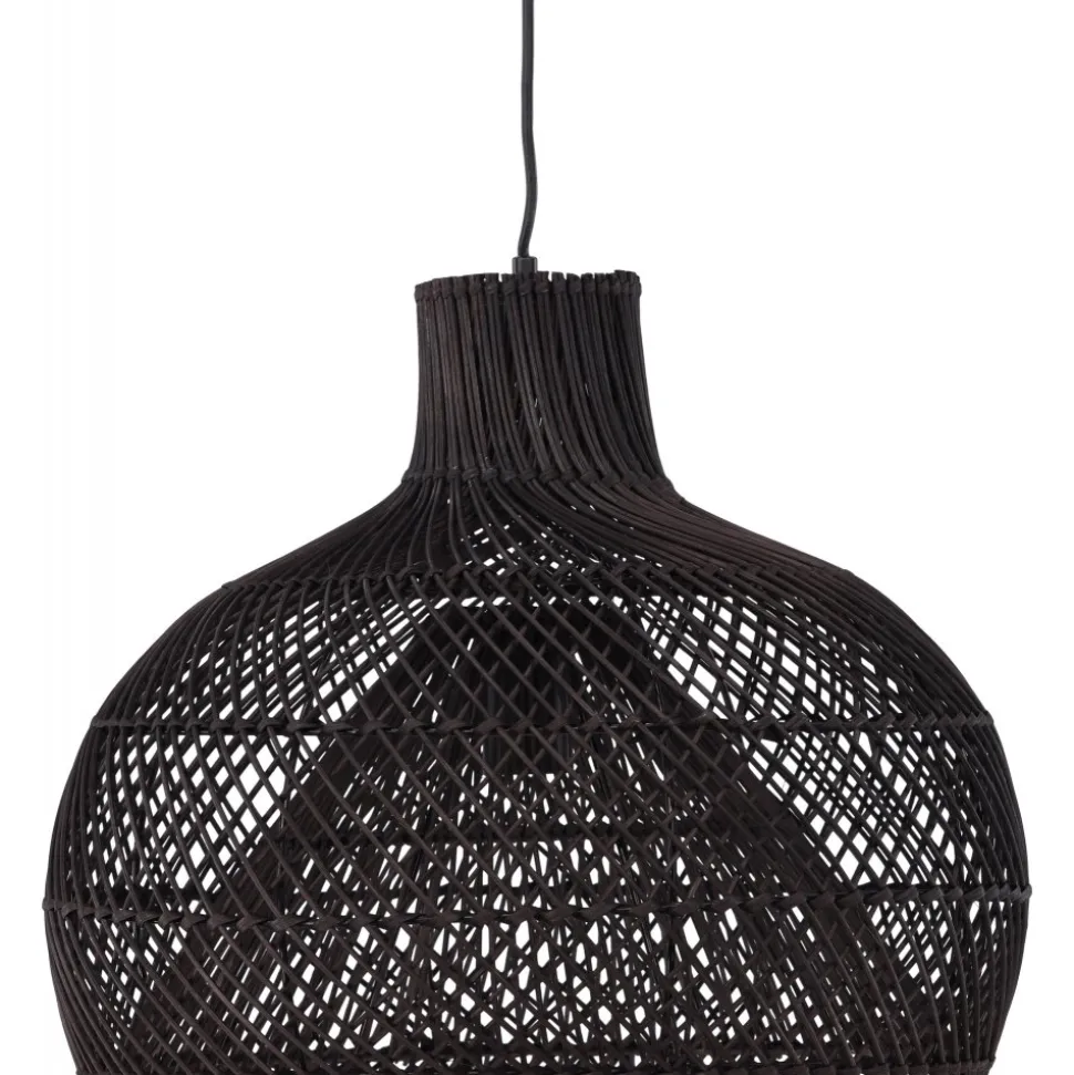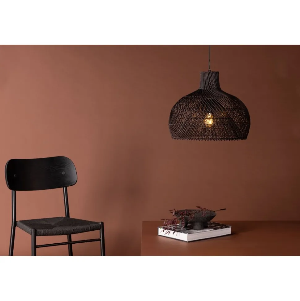 Taklampa som skapar en modern och lyxig känsla i rummet. Lampskärmen är rundad och består utav svart rotting i ett fint mönster. Den generösa storleken gör att lampan passar perfekt över matbordet eller i vardagsrummet. Med denna får du ett vackert sken som skapar en stämningsfull och hemtrevlig atmosfär i rummet.