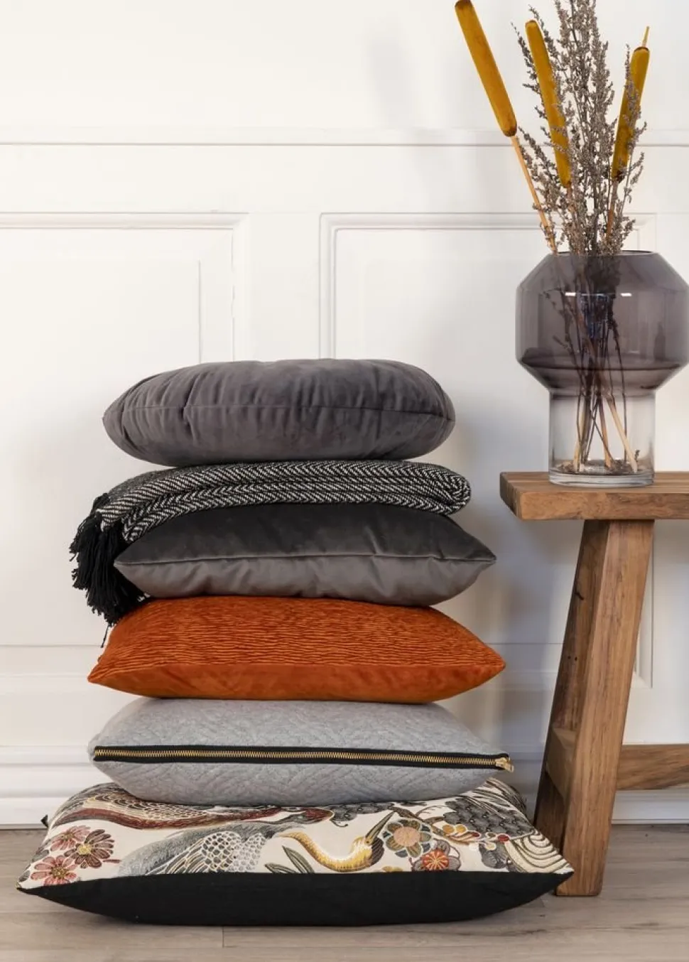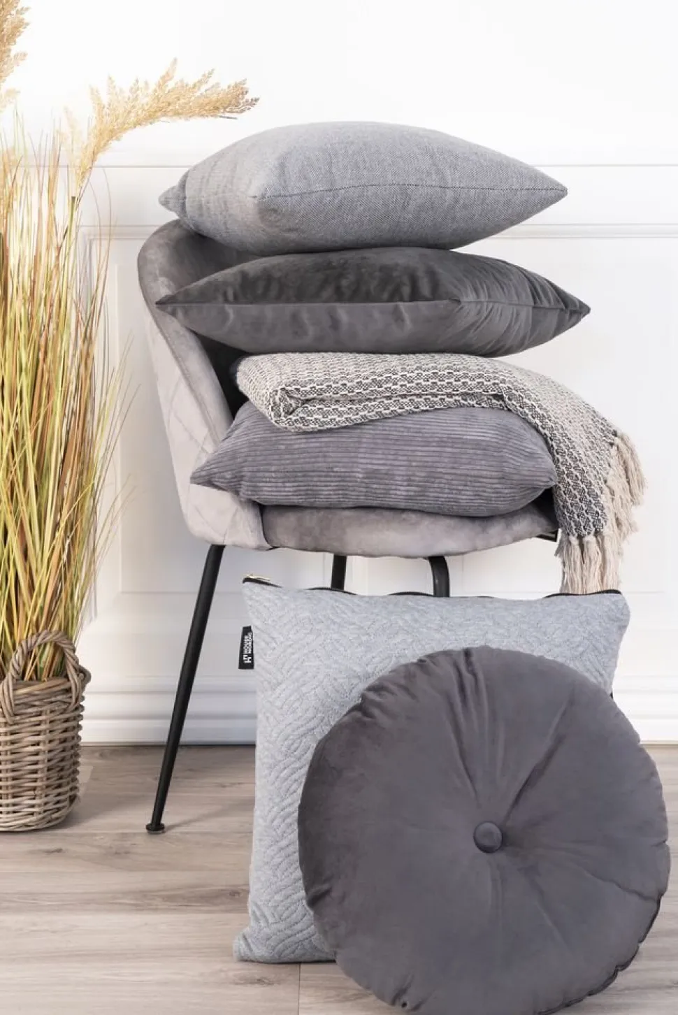 Kudde i mörkgrå velour.