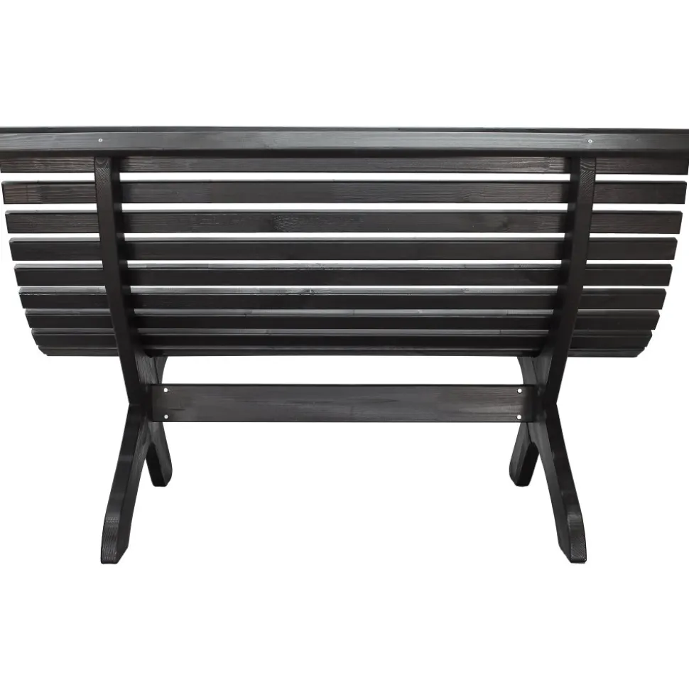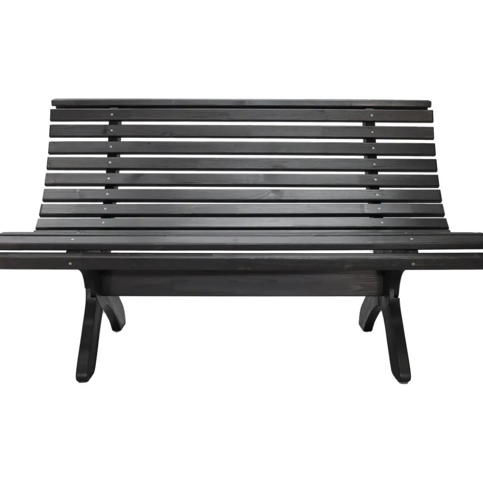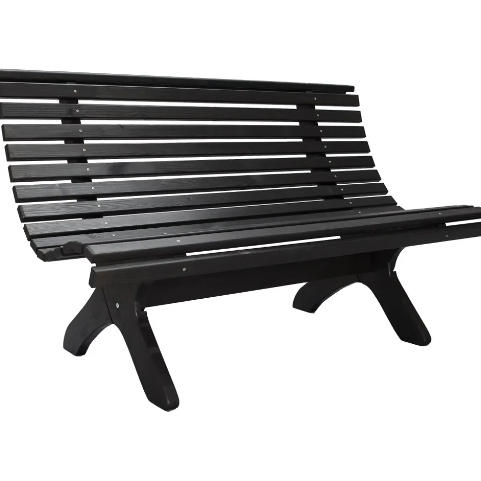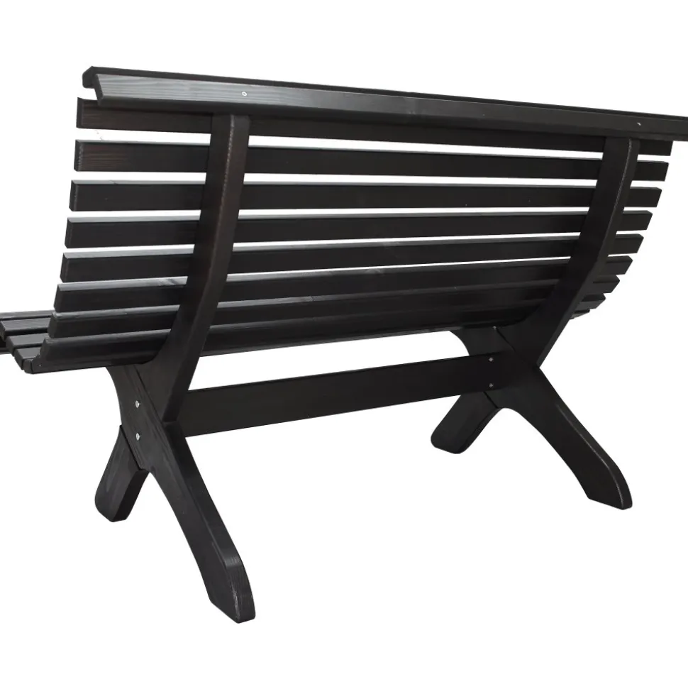 En klassisk svartlaserad parkbänk tillverkad av furu att ha på uteplatsen för att skapa en parkkänsla i trädgården. Bänken är formgiven efter klassiskt skandinavisk möbeltradition.