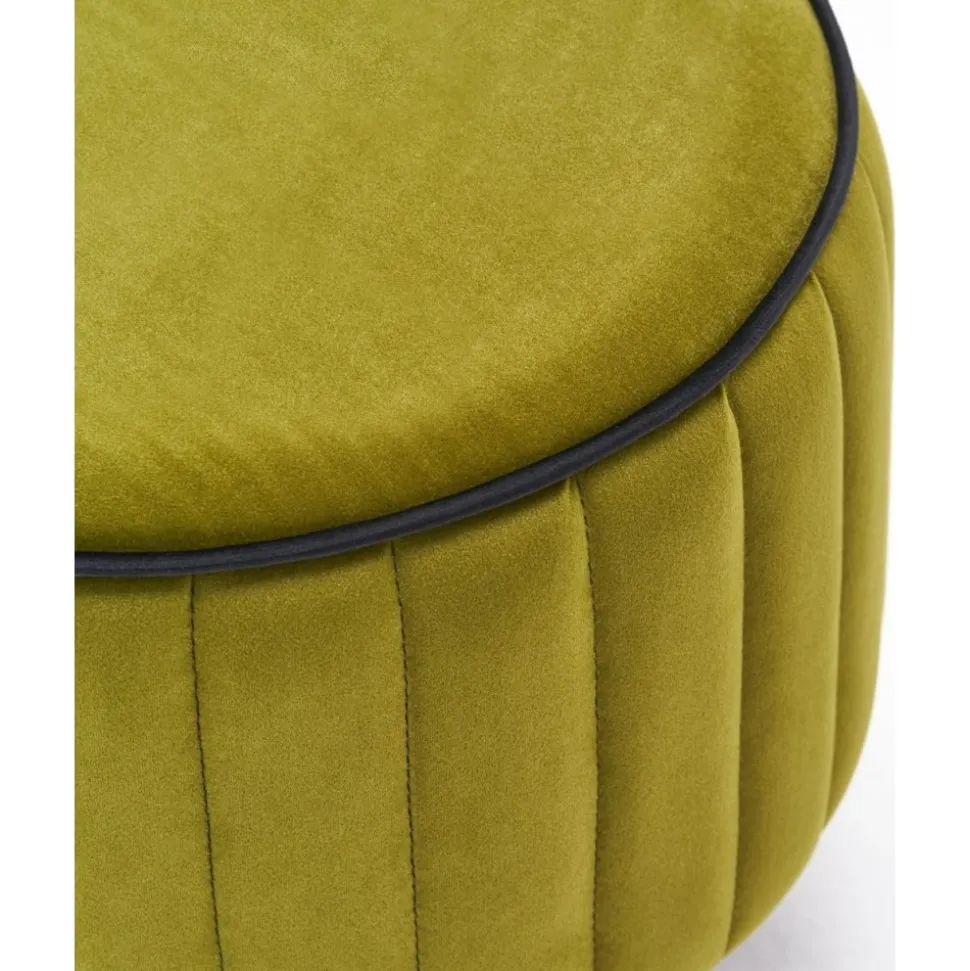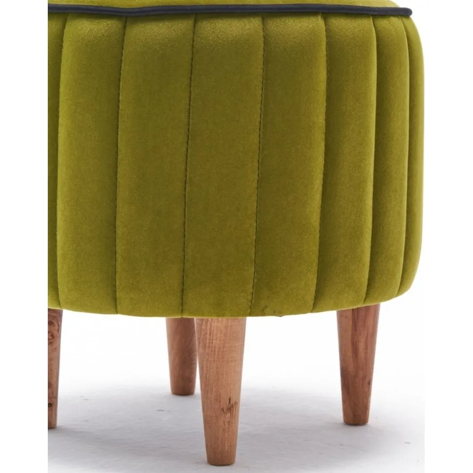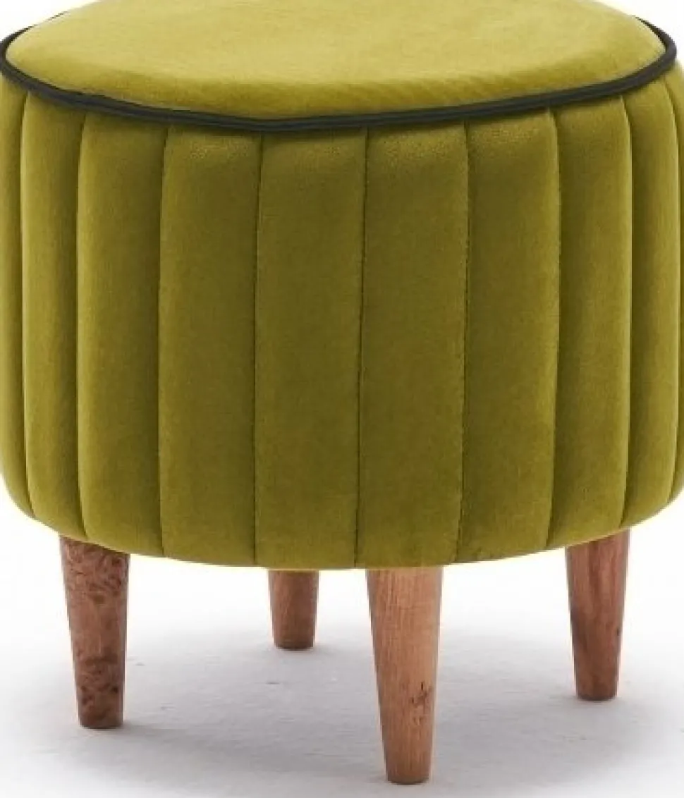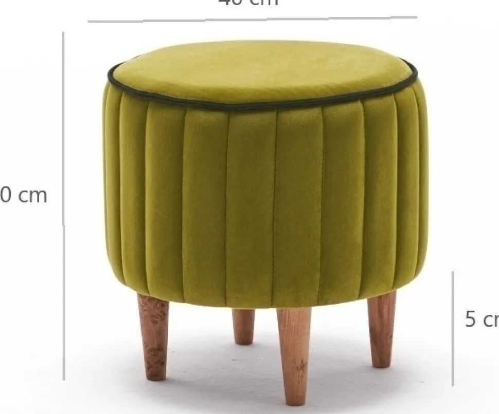 Sittpuff av trä. Klädsel av polyester och sammet.