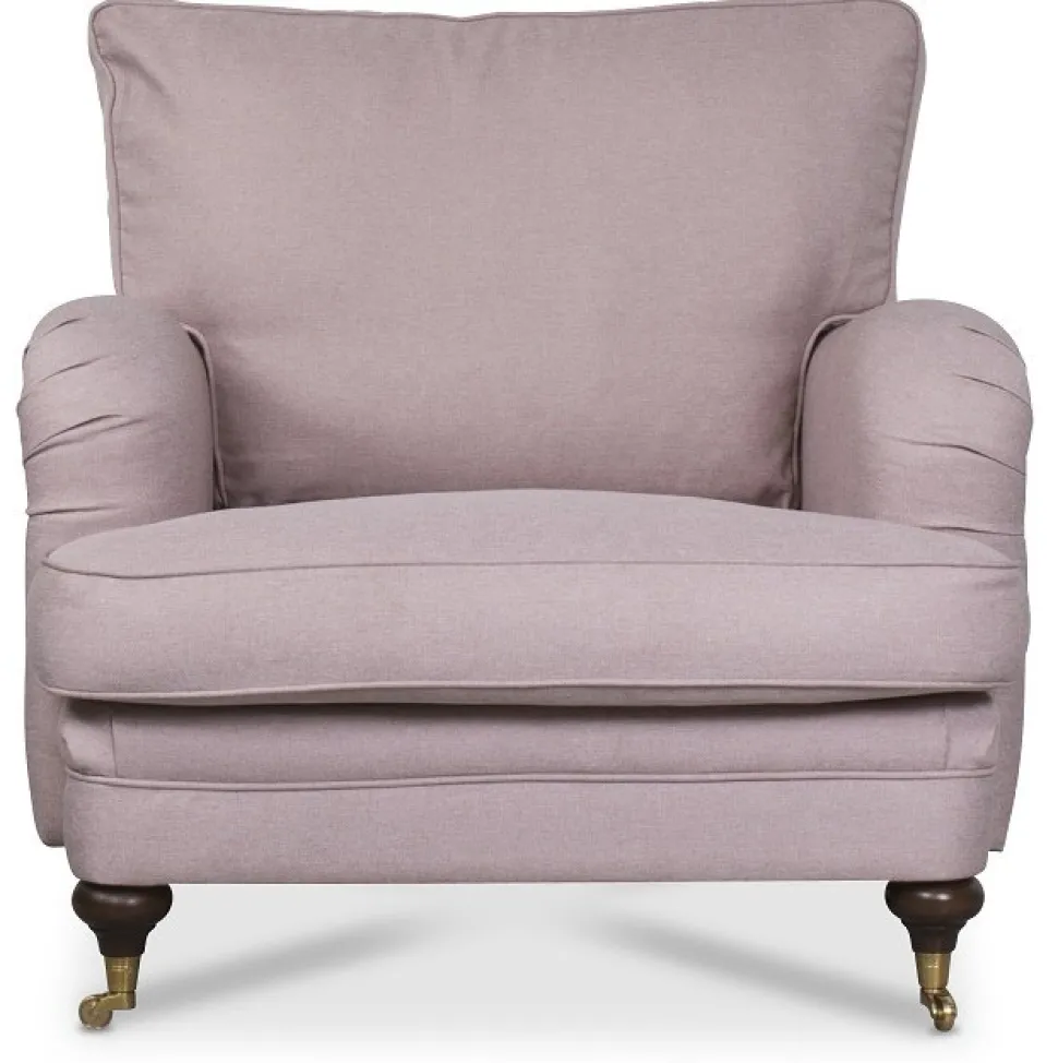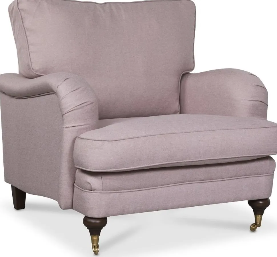 Fåtöljen finns i en rosa och stilren klädsel som passar i alla hem.