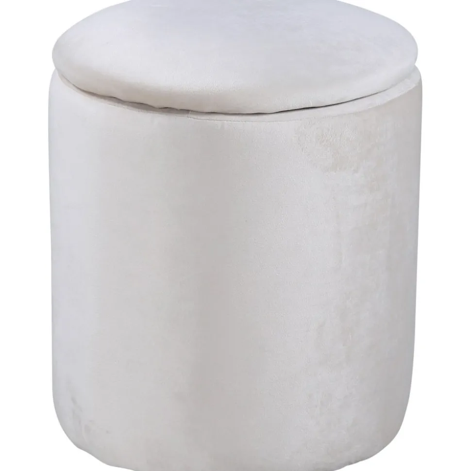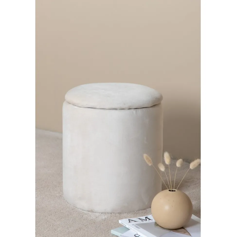 Sittpuff av trä, klädd med polyestertyg.