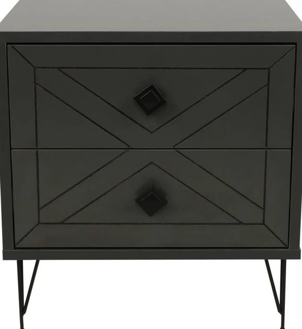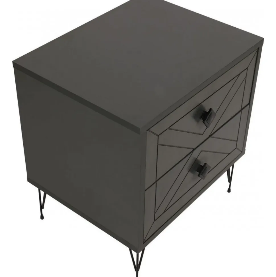 Sängbord av trä och metall.