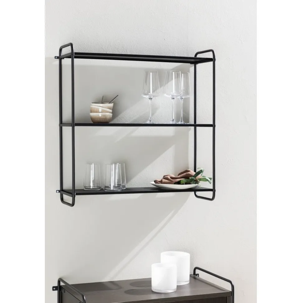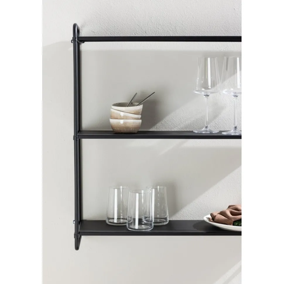 Upplev tidlös elegans och smart förvaring med vår stilrena i svart järn från serien Lyon! Den här svarta pulverlackerade järnhylla kommer inte bara att organisera ditt utrymme, utan också låta dig uttrycka din personlighet på ett subtilt och elegant sätt. Med en design som är tidlös och minimalistisk passar Lyon vägghylla perfekt in i en mängd olika inredningsstilar. De rena linjerna och neutrala färgen smälter samman sömlöst med din befintliga inredning, vilket skapar en atmosfär av enkel elegans. Tre hyllplan ger dig gott om utrymme att organisera och visa upp dina favoritprylar. Ordning och reda har aldrig varit så enkelt – från böcker till växter till personliga skatter, allt har sin plats på Lyon hyllan. Häng upp Lyon på väggen och se hur den förvandlar rummet till en mysig oas. Lyon vägghylla är mer än bara förvaring – den är en investering i stil och funktion. Den finns även i en beige kulör och kommer i två olika storlekar för att bäst anpassa sig efter dina önskemål! Levereras omonterad.