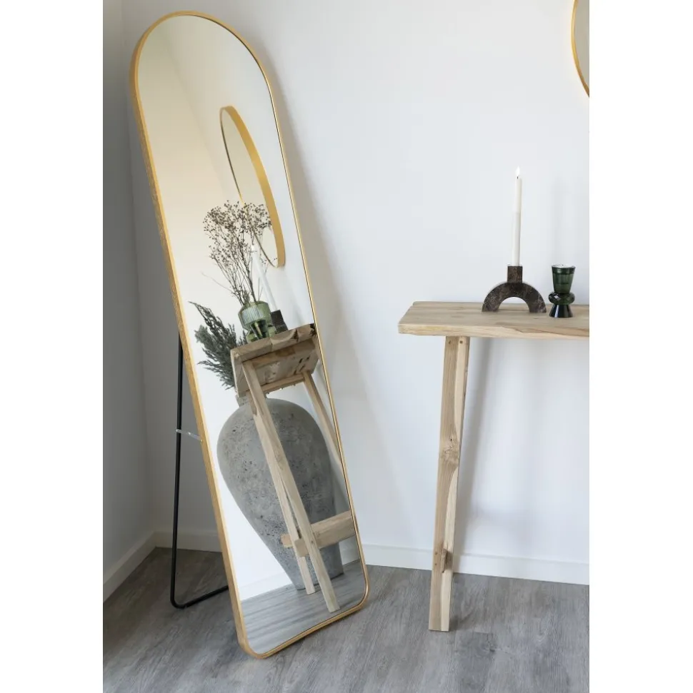 Golvspegel av aluminum och glas.