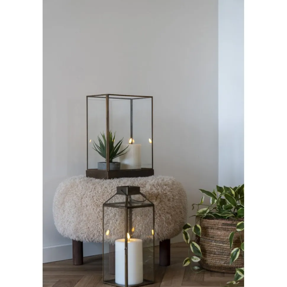 Kub i glas och metall där du kan skapa dina egna kreationer med ljus och dekorationer. Levereras monterad.