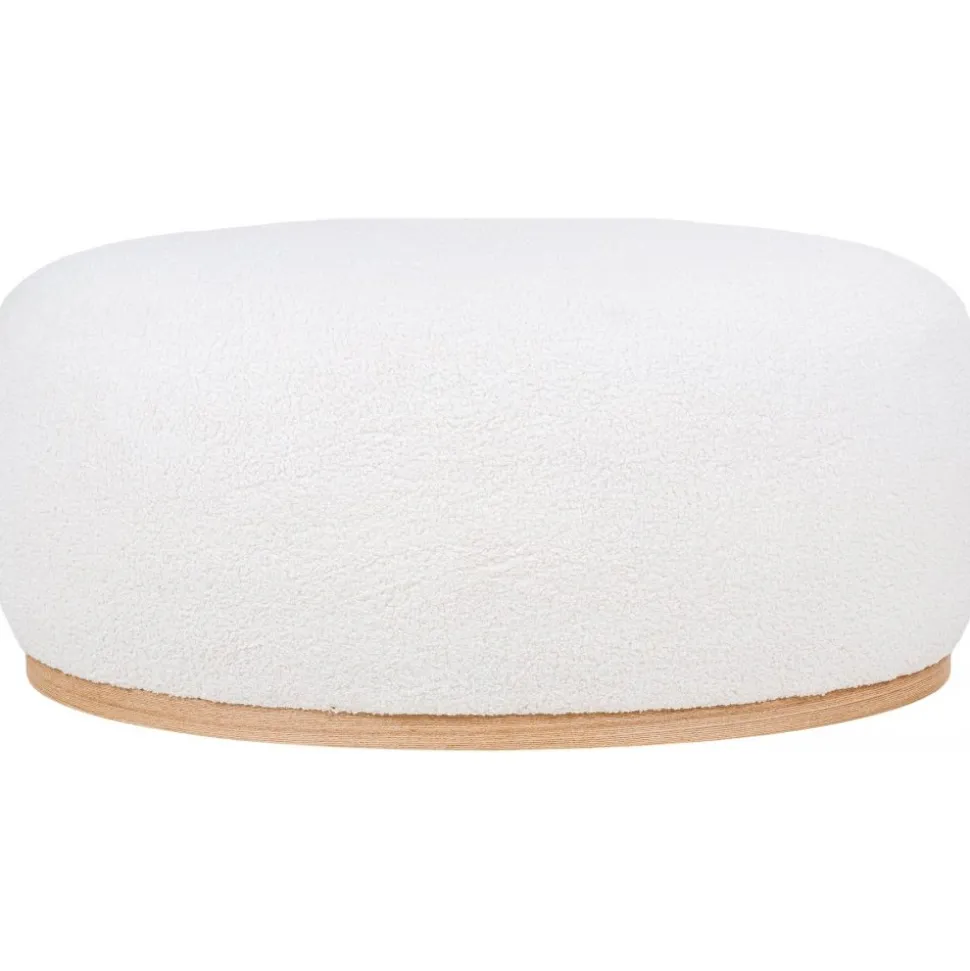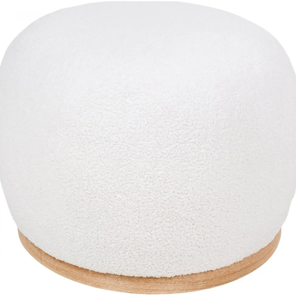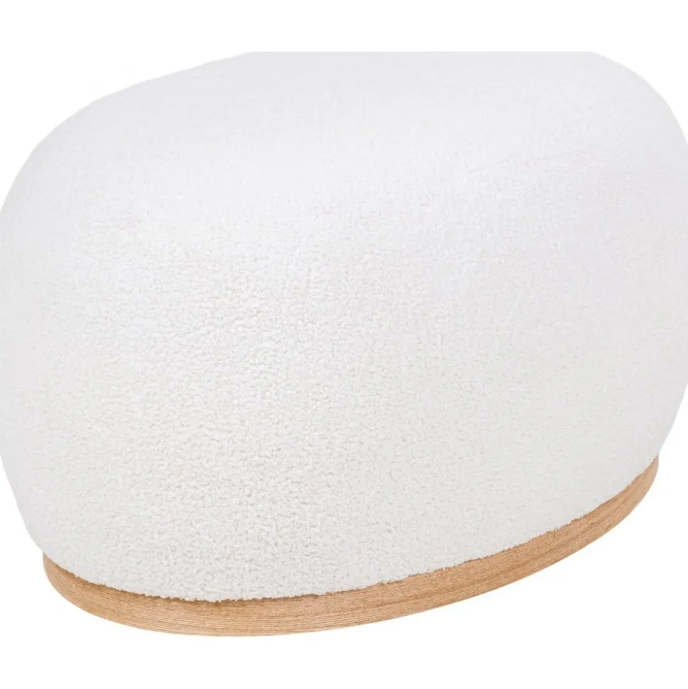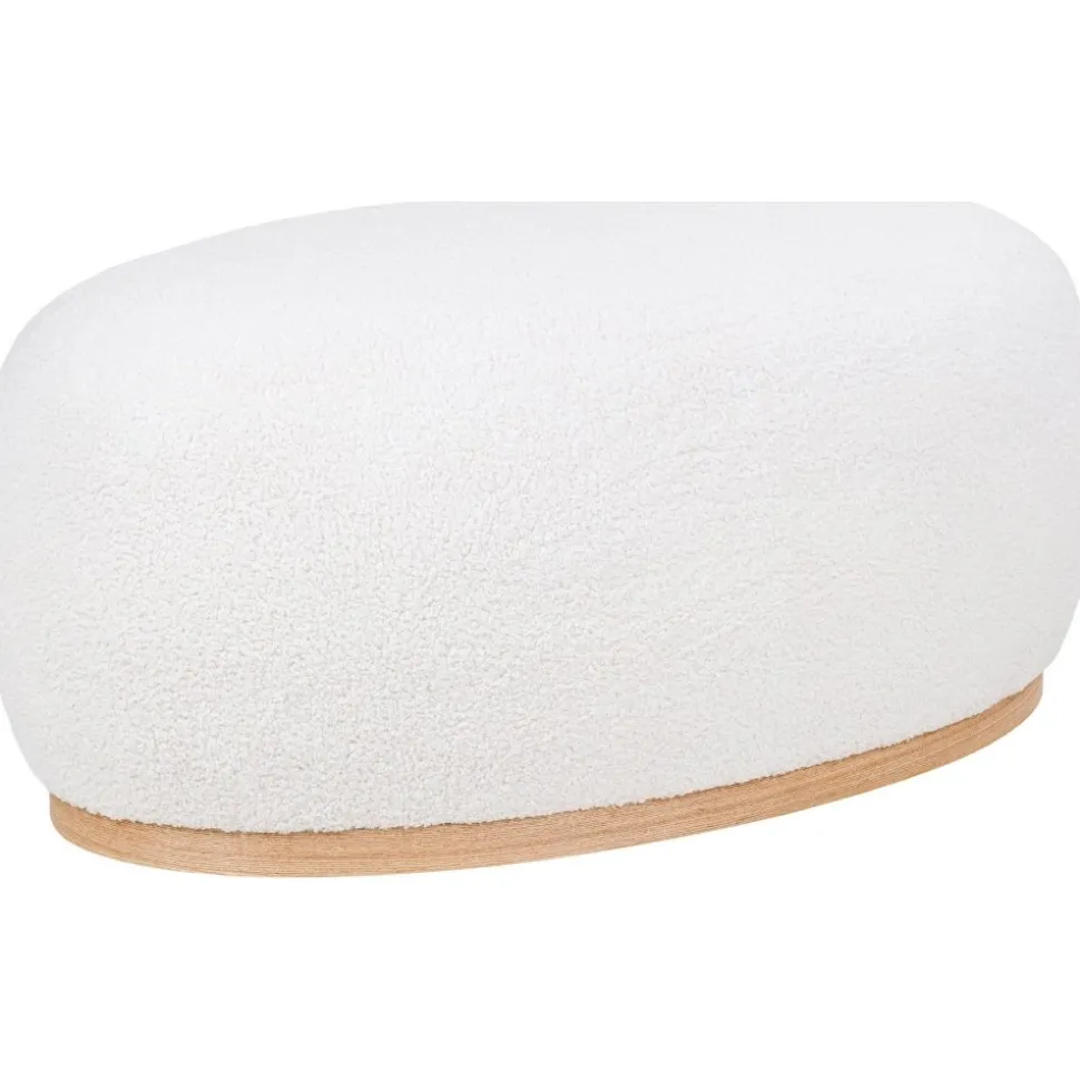 Sittpuff av MDF och furuträ med klädsel av bouclétyg. Levereras monterad.