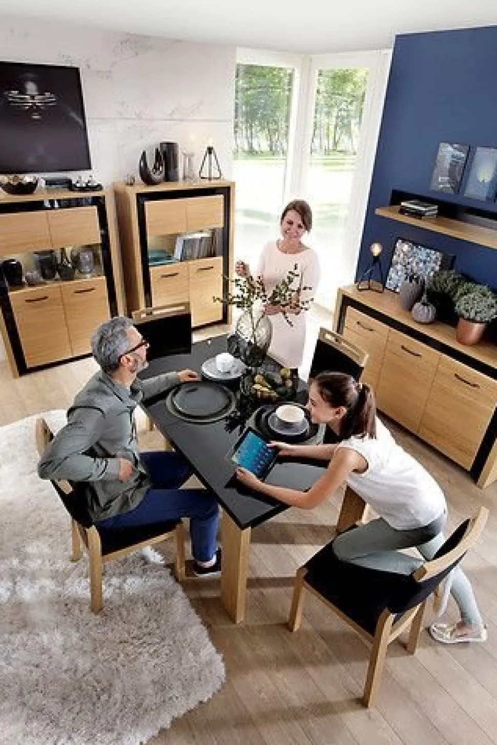 - Utförande: Ek-imitation med svart högglansig ram