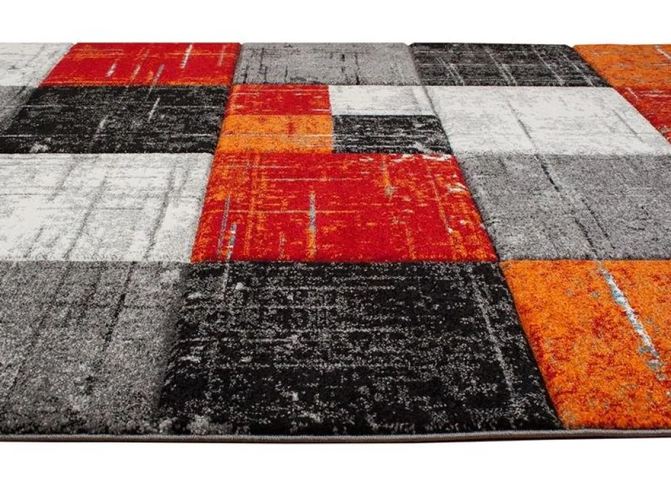 Aversa är en frizematta som har ett snyggt rutmönster och går i färgerna orange, röd, vit och olika toner utav grått och svart. Mattan har detaljer som påminner om färgstänk, vilket skapar en gammeldags och sliten look. Nougat har en kort skuren lugg och är maskinvävd i polypropylen, vilket är ett syntetmaterial som är lätt att rengöra och hålla fri ifrån ludd och damm. Eftersom den har korta fibrer så tränger inte smuts in lika lätt som på en med längre fibrer och den har en hög resistens mot de flesta fläckar.