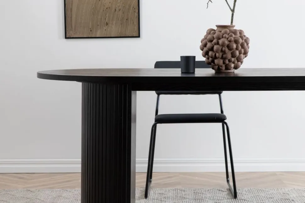 Matbord med en modern design. Tillverkat i solid trä och MDF, med vacker svartbetsad ekfanér.