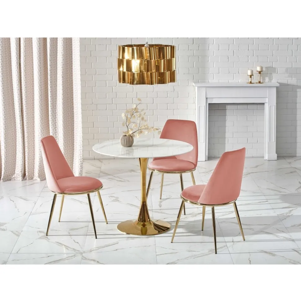 - Matbord 90 cm diameter marmorerat glas/guld