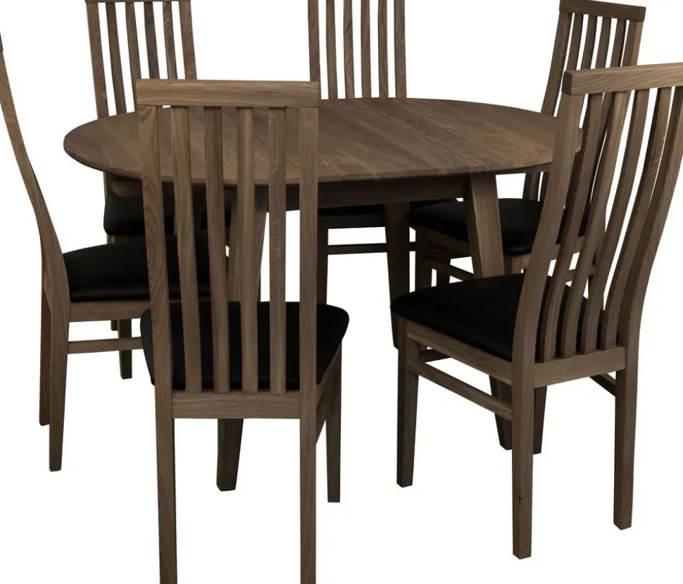 Genova runt/ovalt i brunoljad ek som praktiskt och smidigt kan förlängas från 90 cm till 130 cm. Detta erbjuder vi i två storlekar i utförande oljad ek, vitpigmenterad och brunoljad ek. Spana gärna in serien Genova.