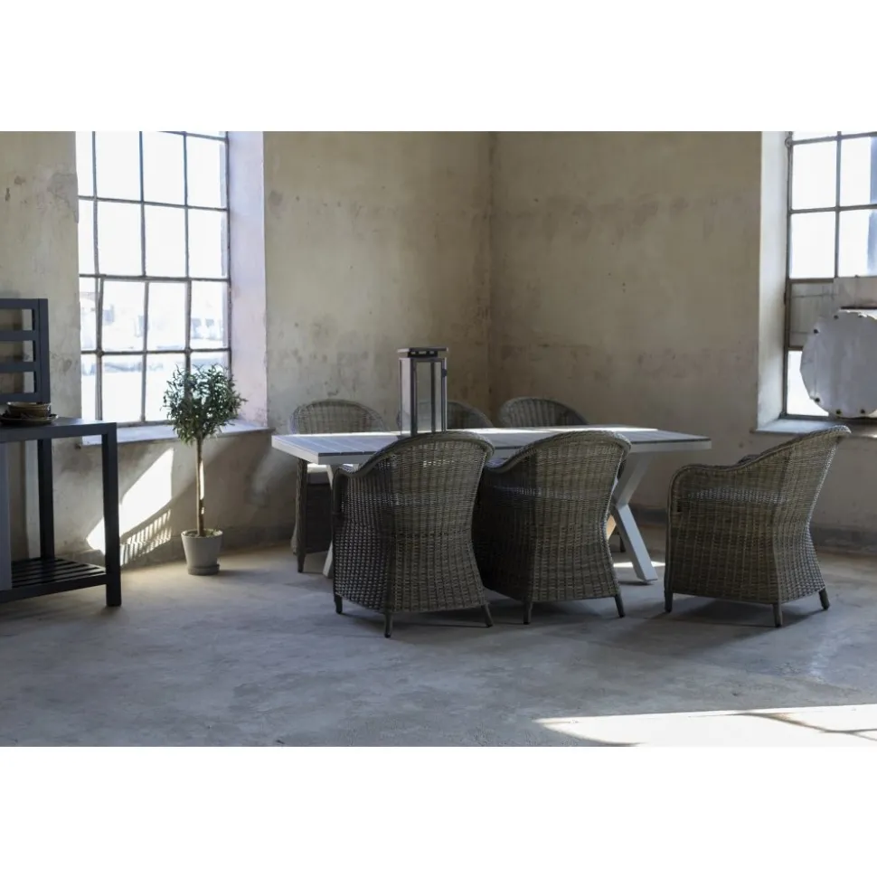 Matgrupp Mercury bord inkl 6 st fåtöljer – Konstrotting/Vit aluminium: