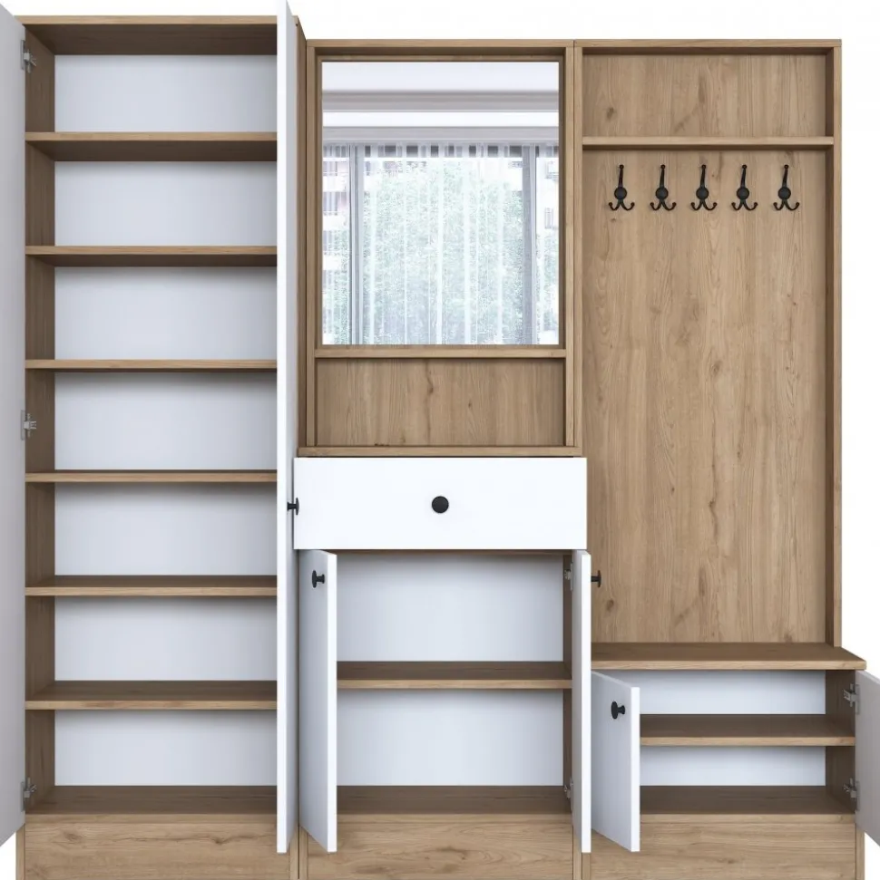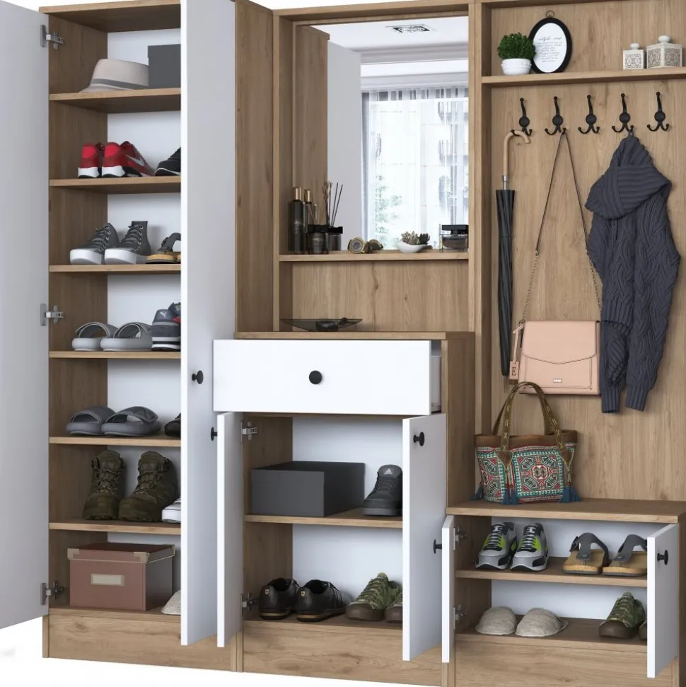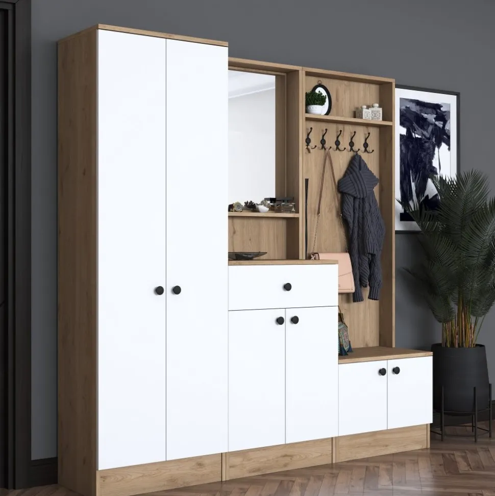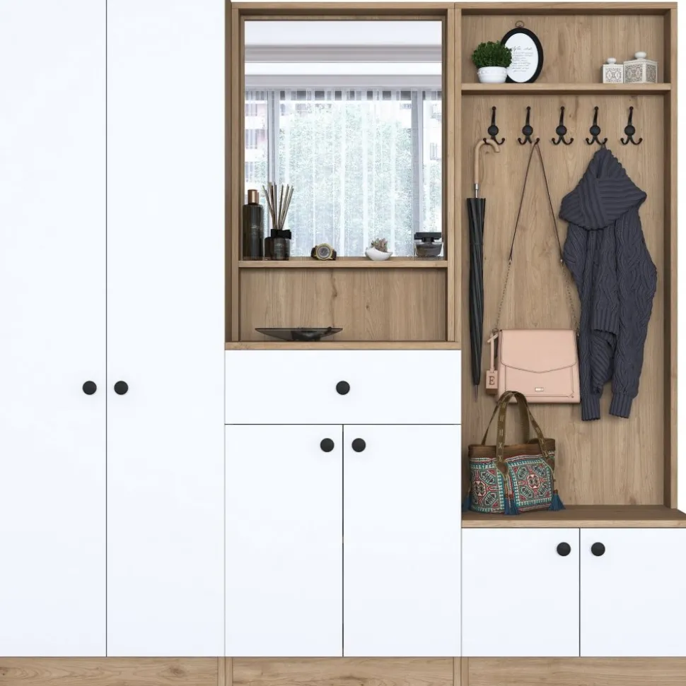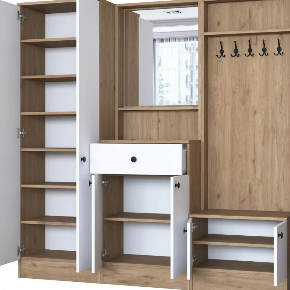Hallmöbel av melaminbelagd spånskiva.