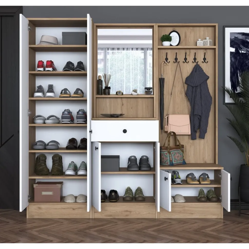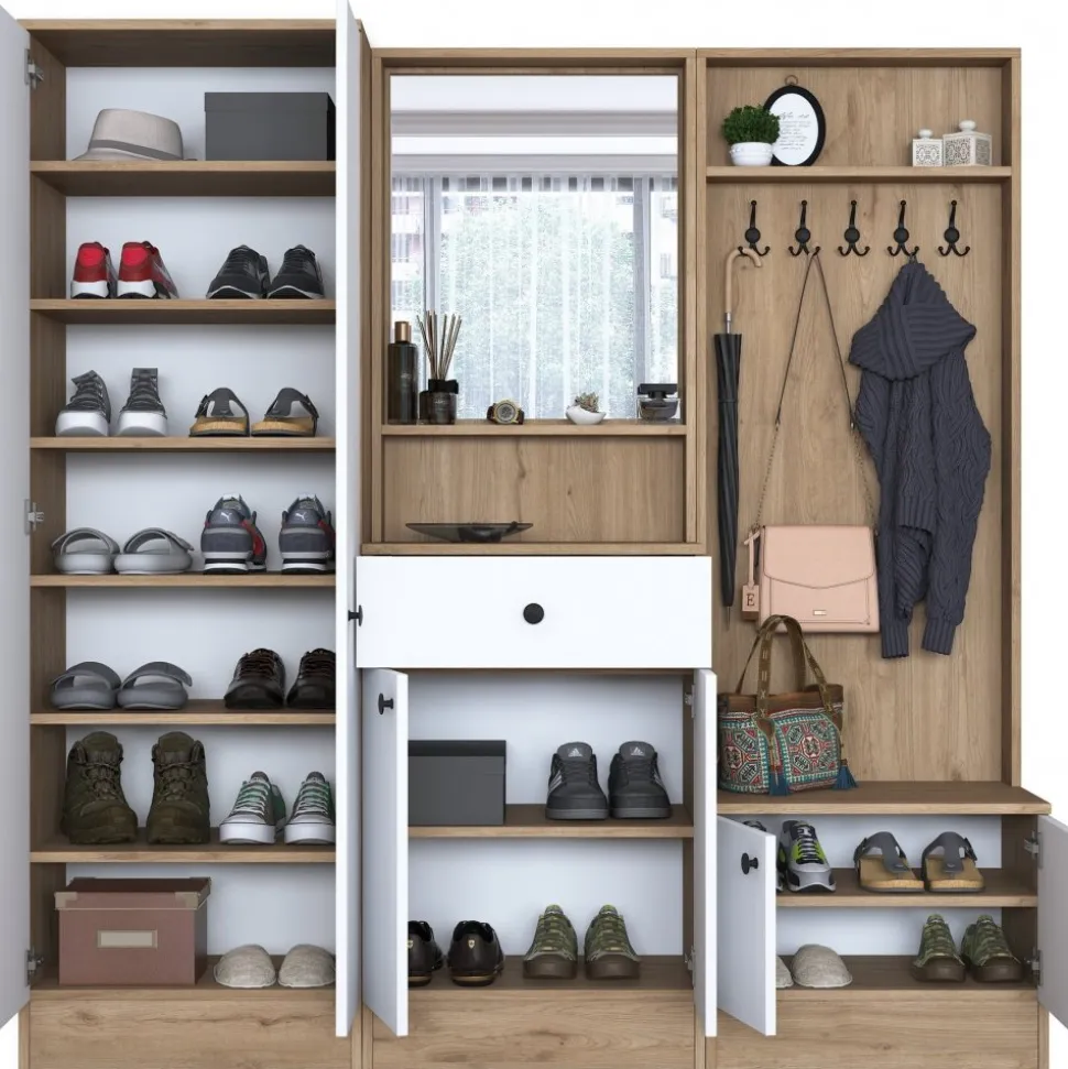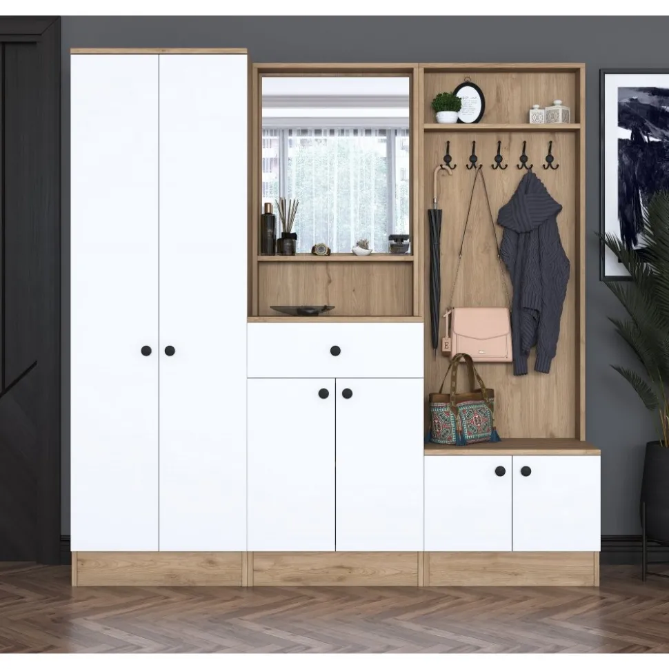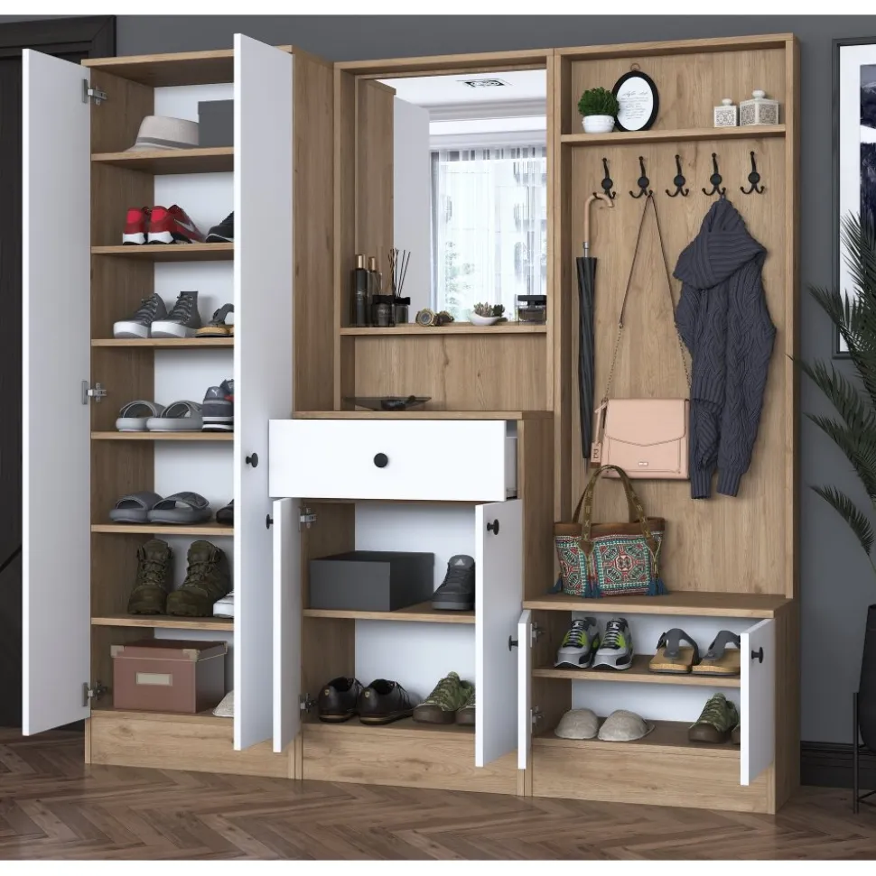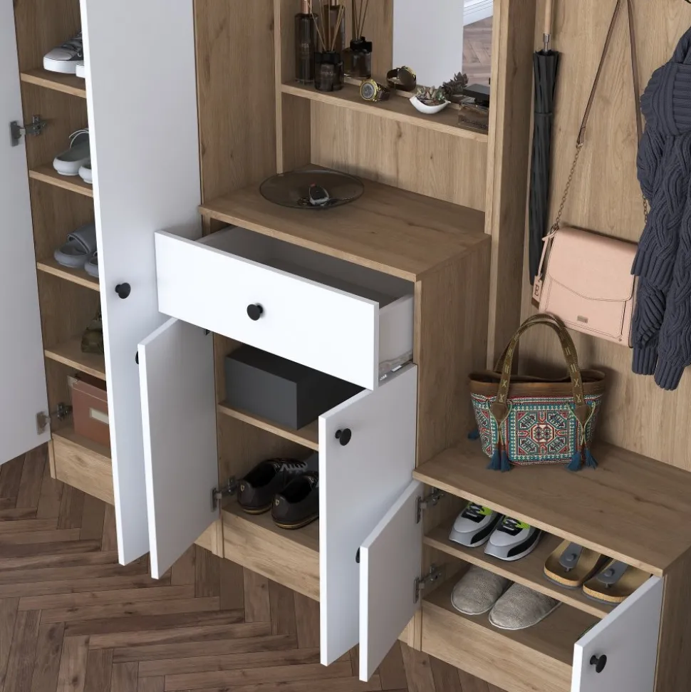 Hallmöbel av melaminbelagd spånskiva.