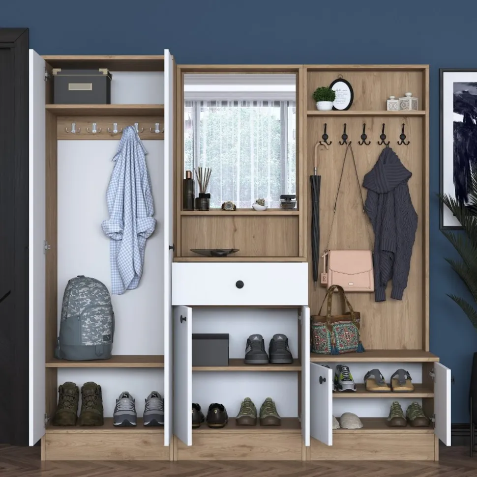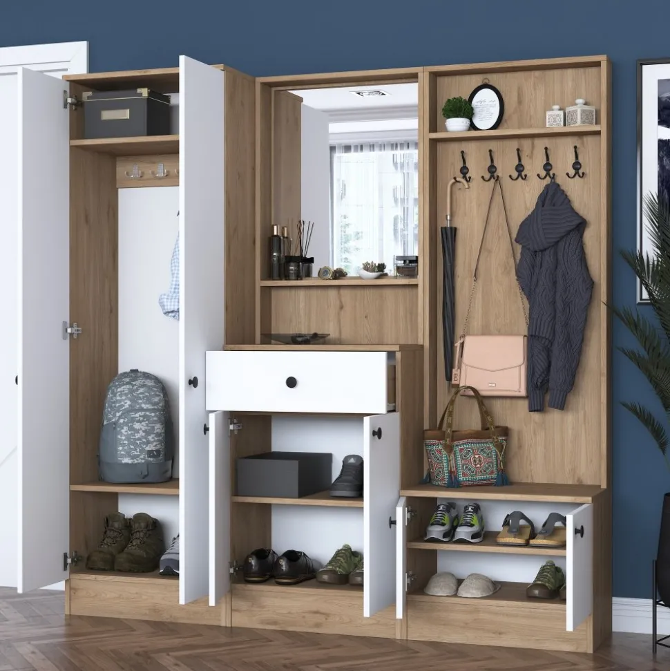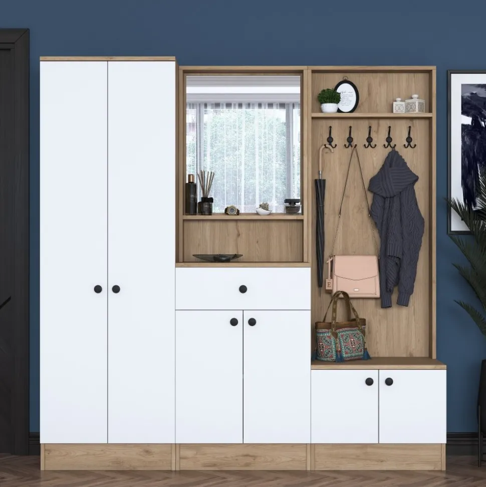 Hallmöbel av melaminbelagd spånskiva.