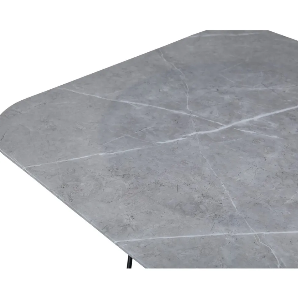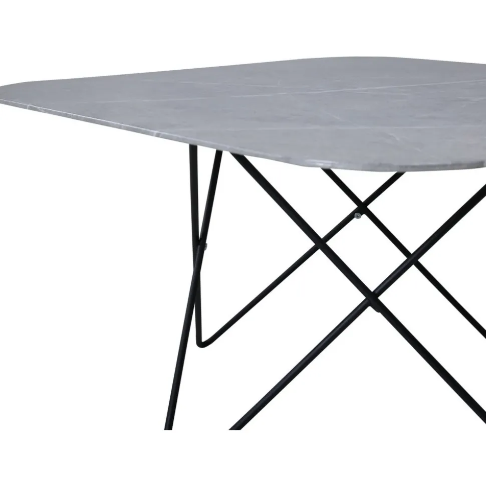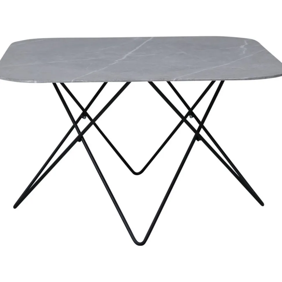 Soffbord av metall och marmorglas.