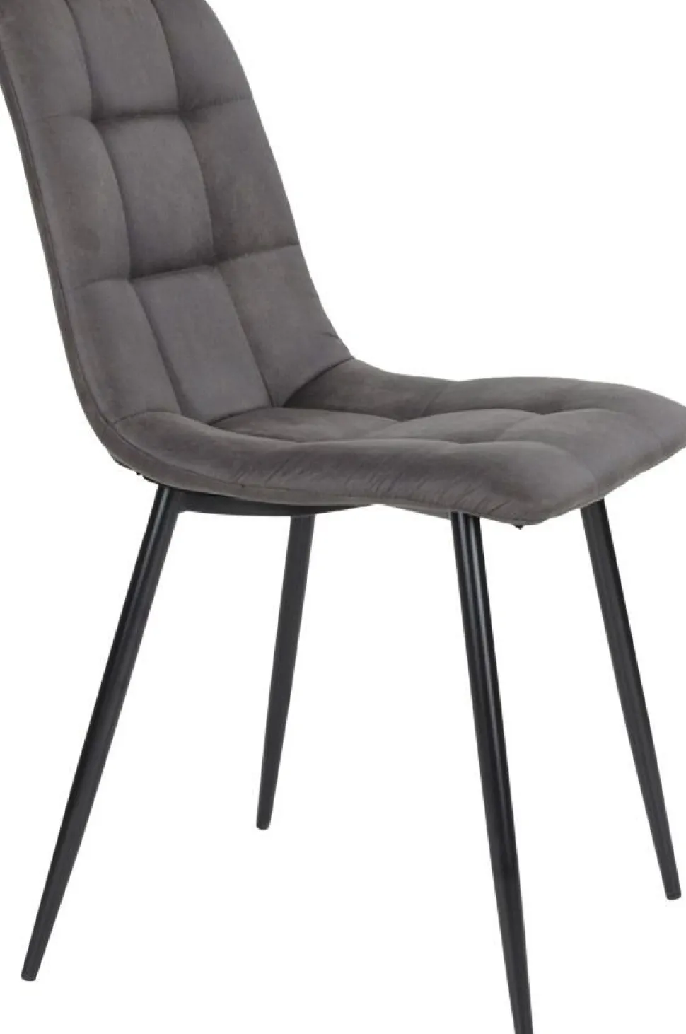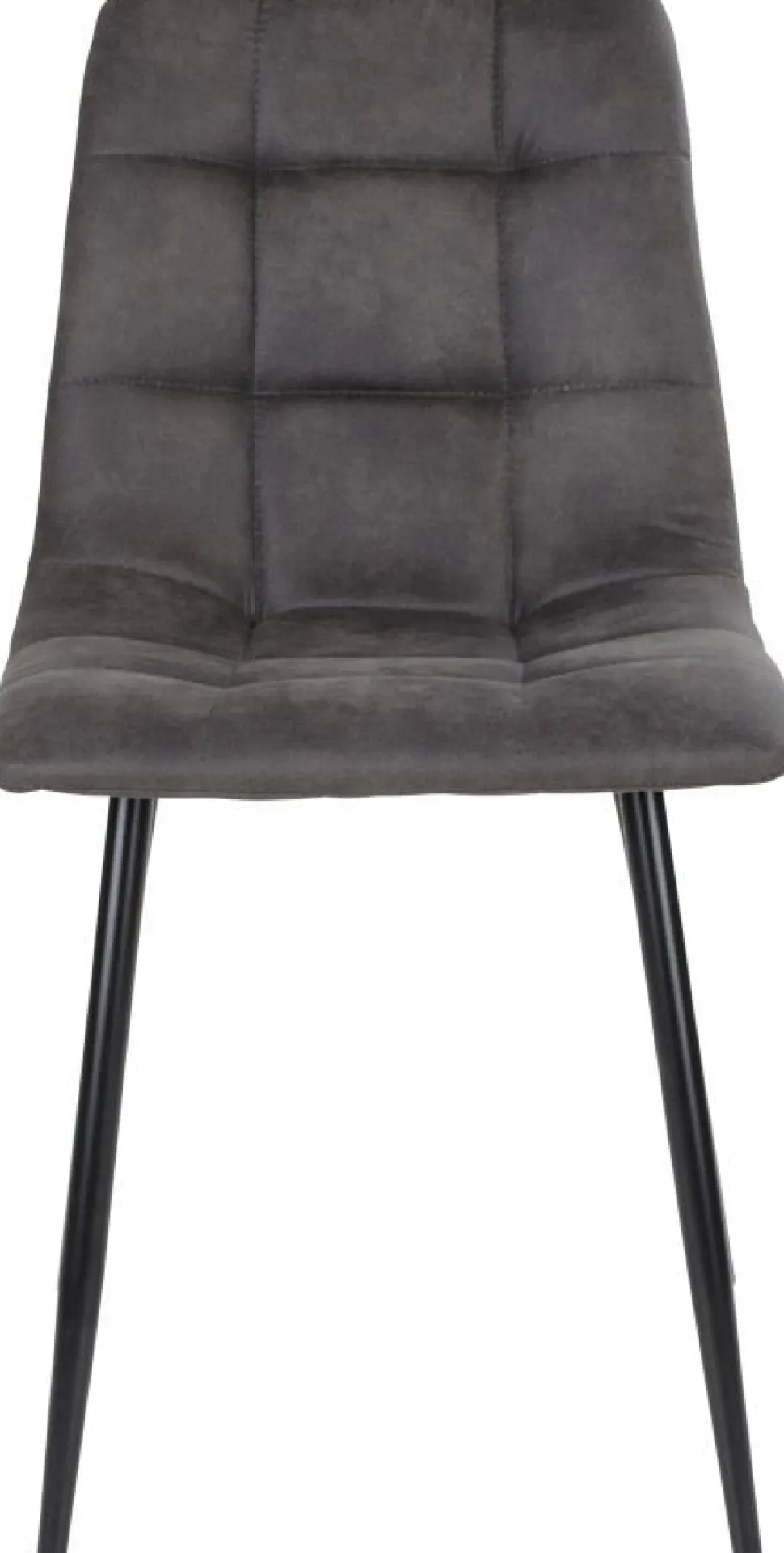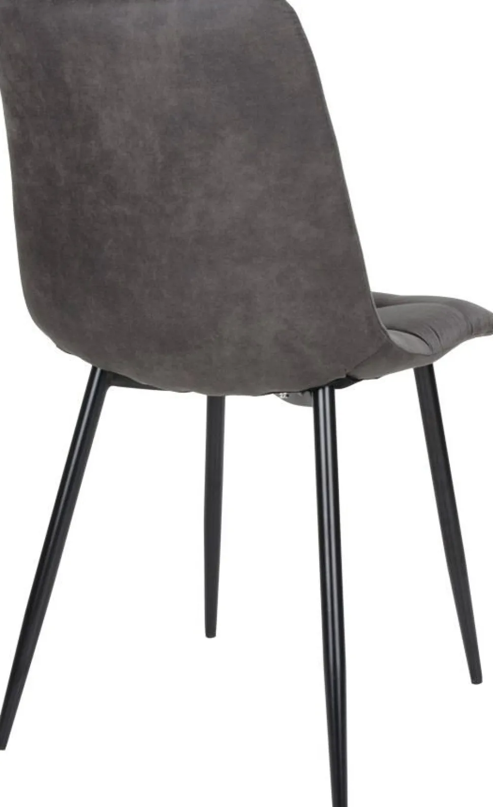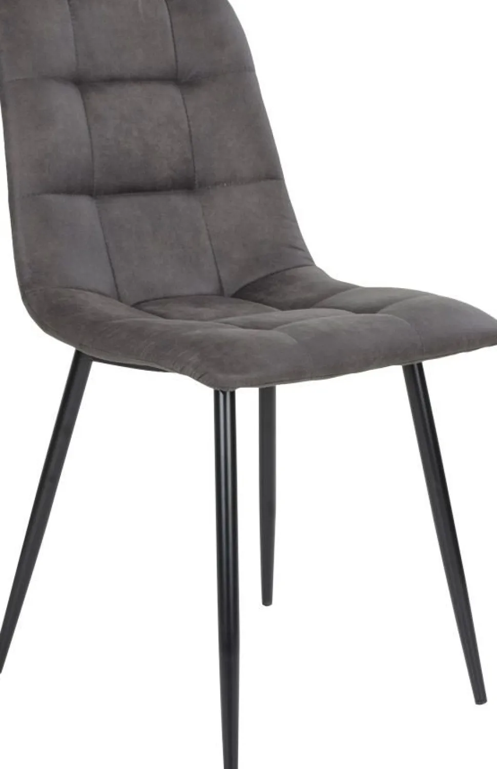 Stol i mörkgrått mikrofibertyg med svarta stålben.