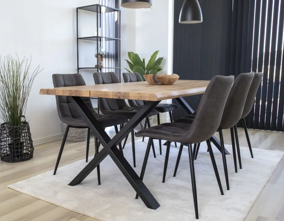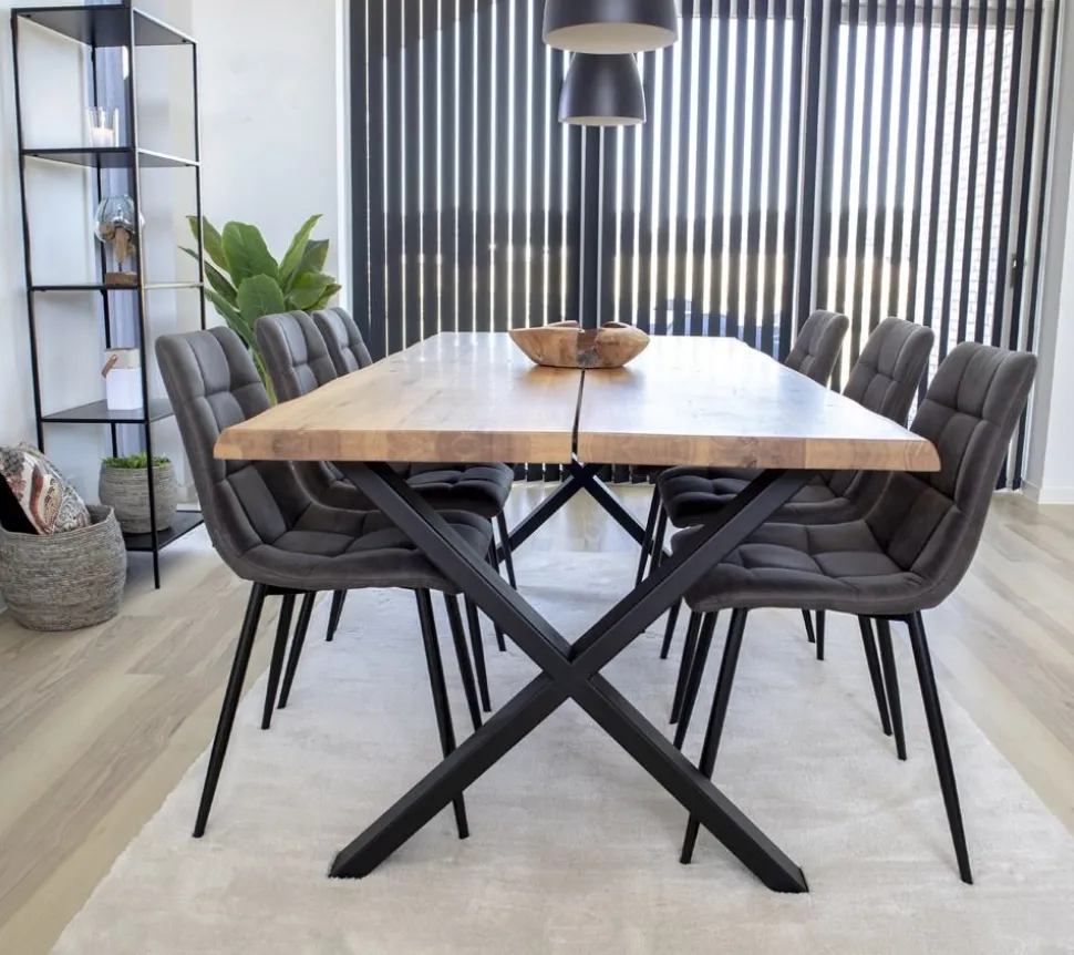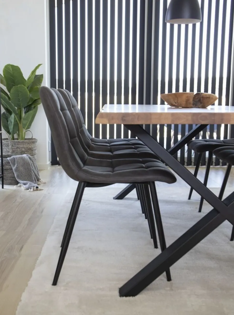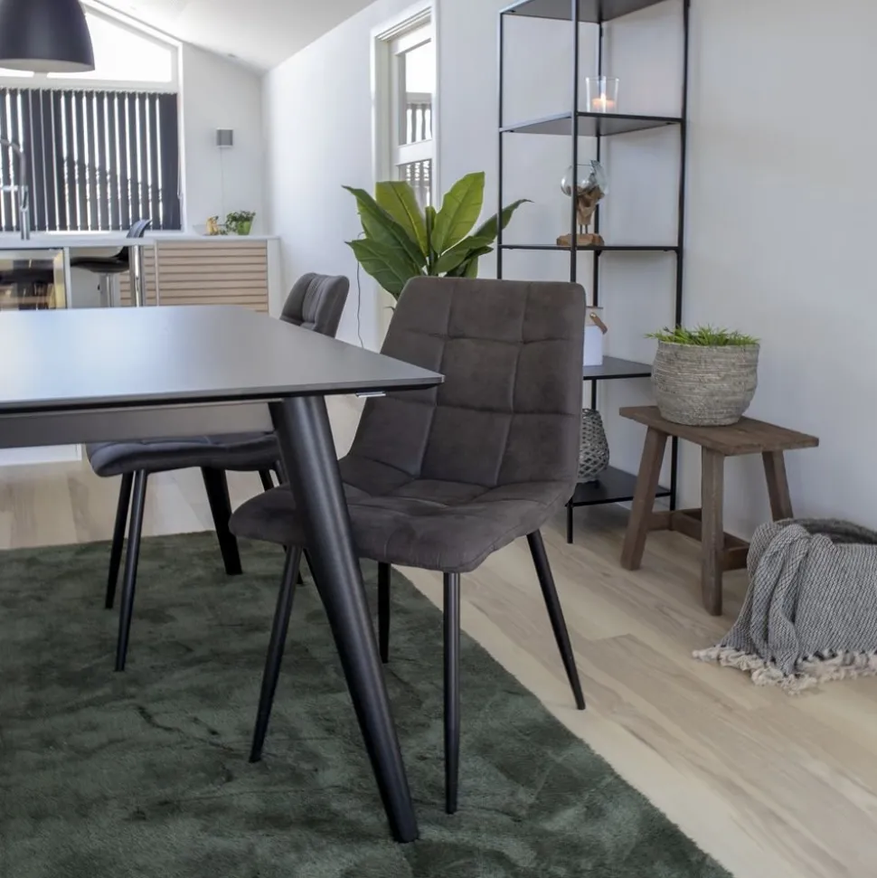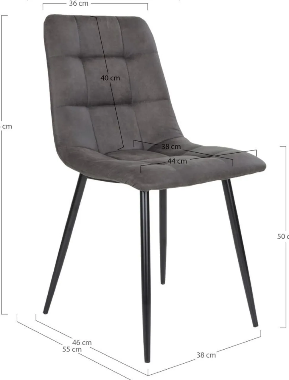 Stol i mörkgrått mikrofibertyg med svarta stålben.