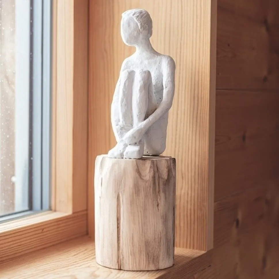 Skuptur i mangoträ och polyresin. Den fina statyn utstrålar lugn och eftertanke.