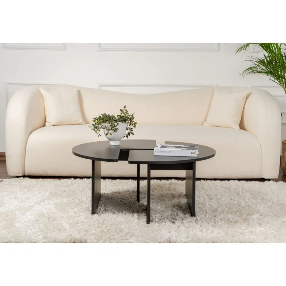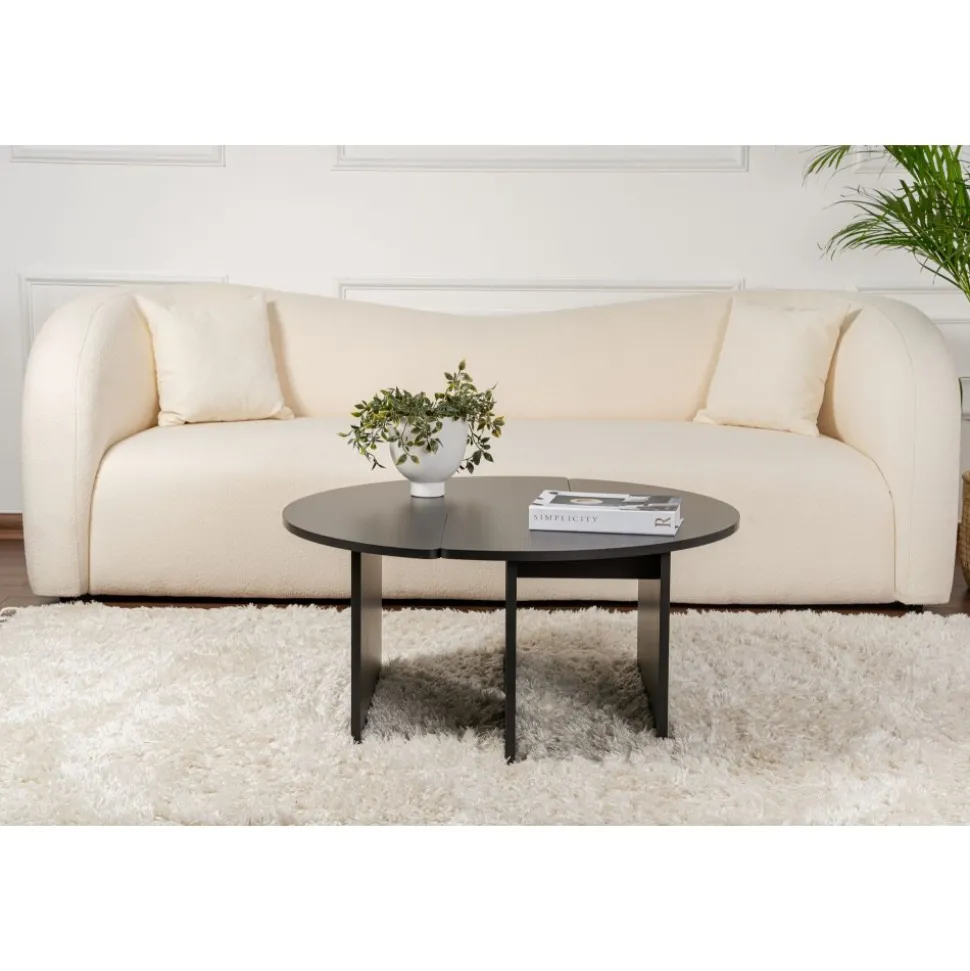 Soffbord av melaminbelagd spånskiva.