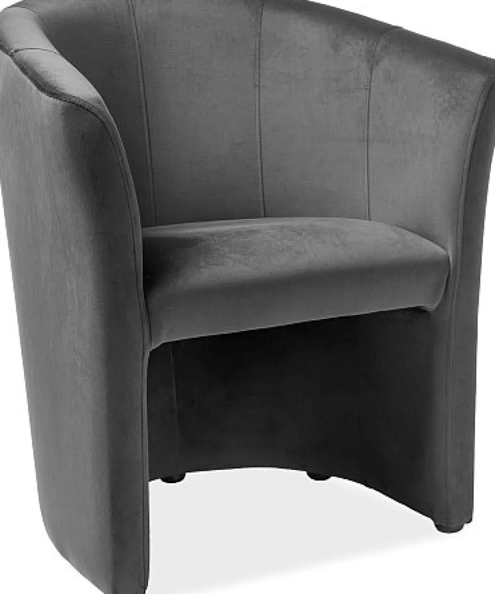 Fåtöljen är tillverkad av plywood för stabilitet och hållbarhet och har flamsäkert tyg i grå sammetimitation, vilket ger både säkerhet och en stilren look. Fåtöljen har skumfyllning för optimal komfort och stöd.