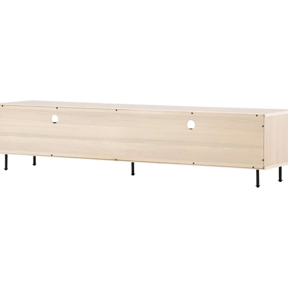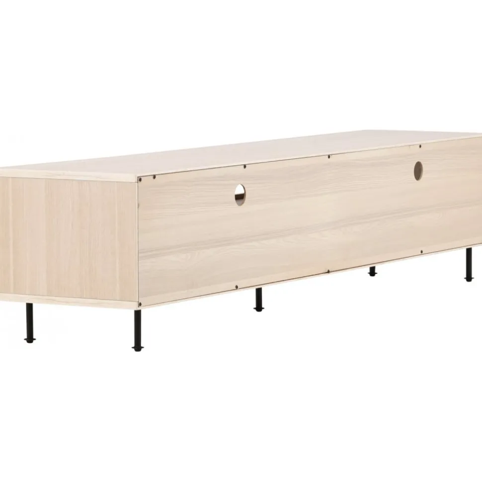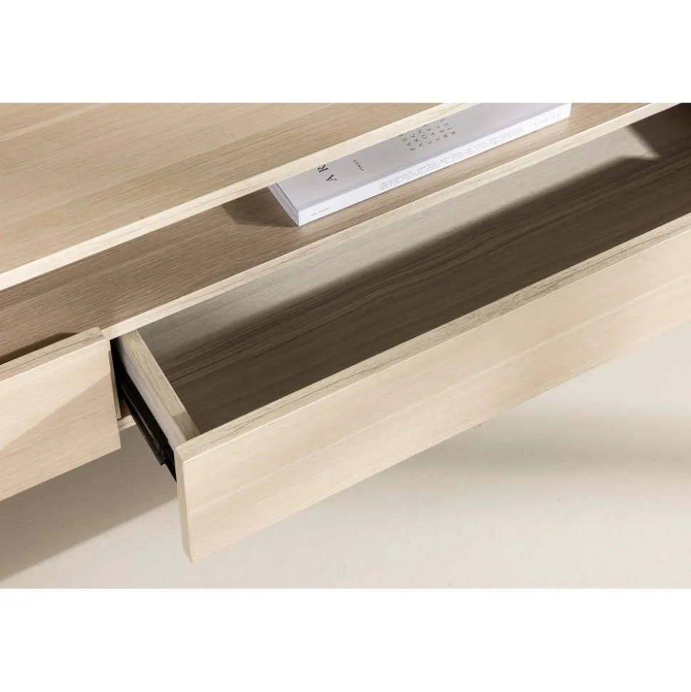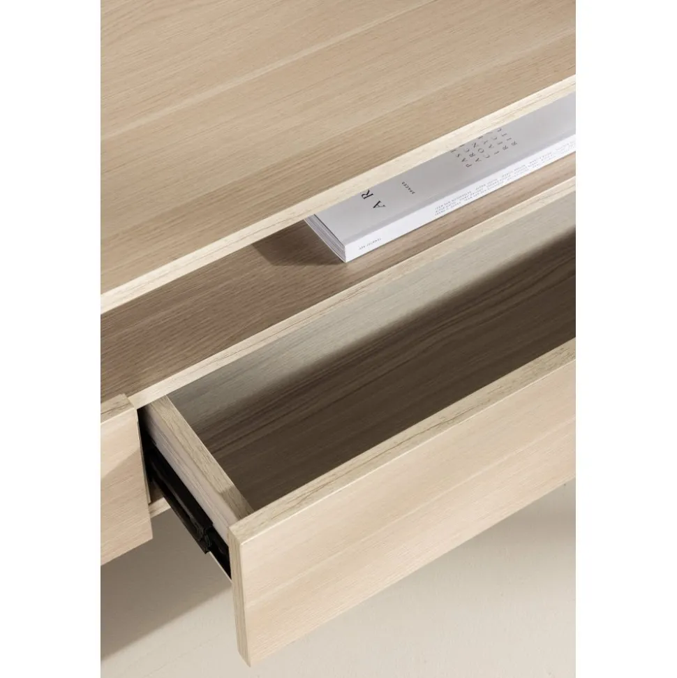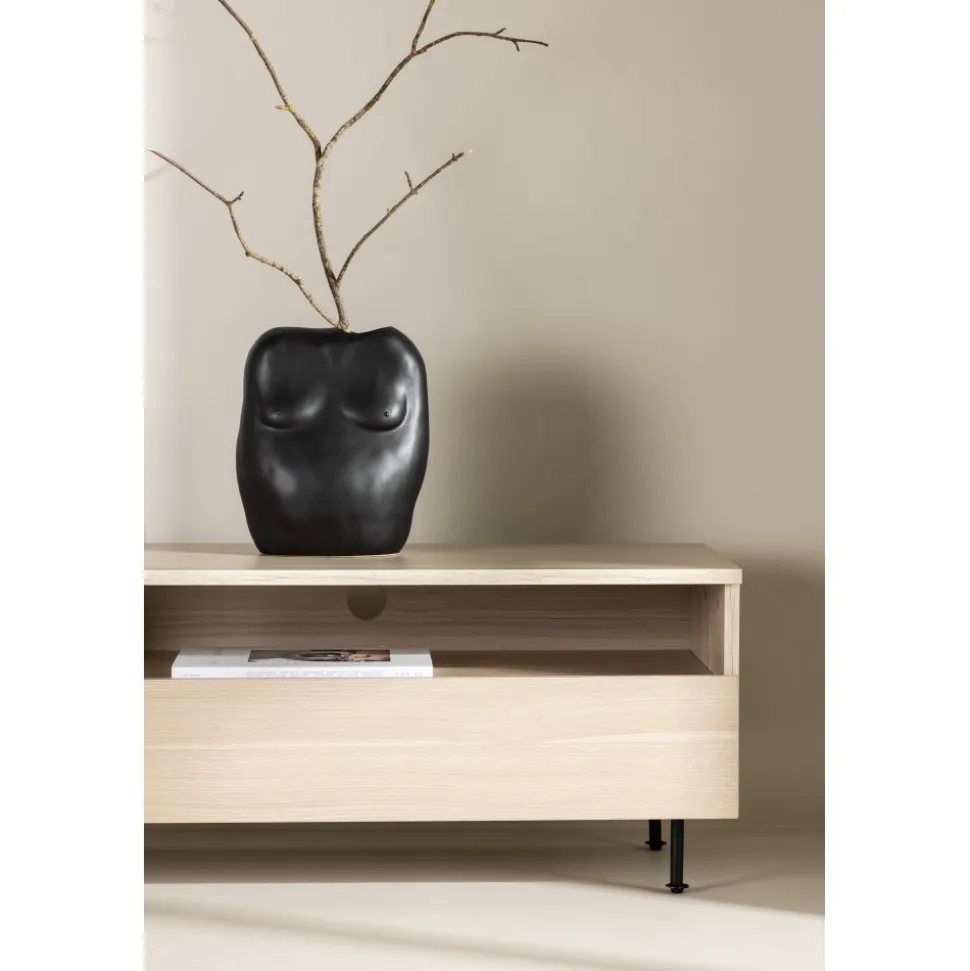 Möblera ditt vardagsrum i den nordiska stilen med vår lyxiga Tv-bänk i vitputsad kulör från serien Navarra! Denna underbara möbel med en hållbar yta av vitputsat melamin imponerar verkligen med sin moderna stil och smarta förvaringslösningar. Navarra har två rymliga lådor, perfekta för att diskret röja undan allt från fjärrkontroller till favoritböckerna. De öppna hyllfacken ovanför ger dig flexibilitet att visa upp något vackert föremål eller låta de mest använda prylarna vara nära till hands. Skapa sedan även din egen harmoni genom att pryda toppskivan med fina ljusstakar och snygga högtalare för en fulländad tv-upplevelse.Den här Tv-bänken lutar mot fyra smala ben i svart färg som lyfter upp den till en stilren nivå. Men tv-bänkens höjd ger inte bara ett lyft till din inredning utan underlättar också din städrutin – här kommer dammsugaren smidigt under och håller rent i ditt hem. Här får du verkligen en Tv-bänk som kombinerar tidlös design med smart förvaring. Upplev en känsla av lugn och organiserad lyx varje dag och bygg din soffhörna tillsammans med Navarra för en komplett Tv-hörna! Levereras omonterad.