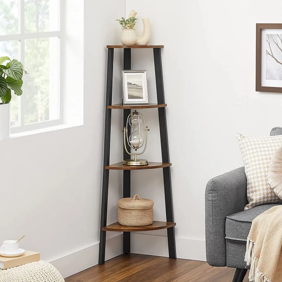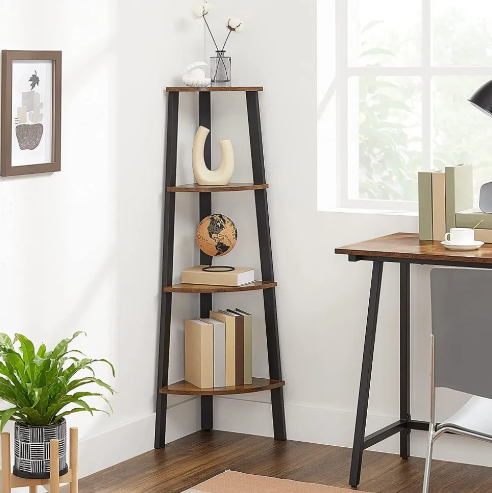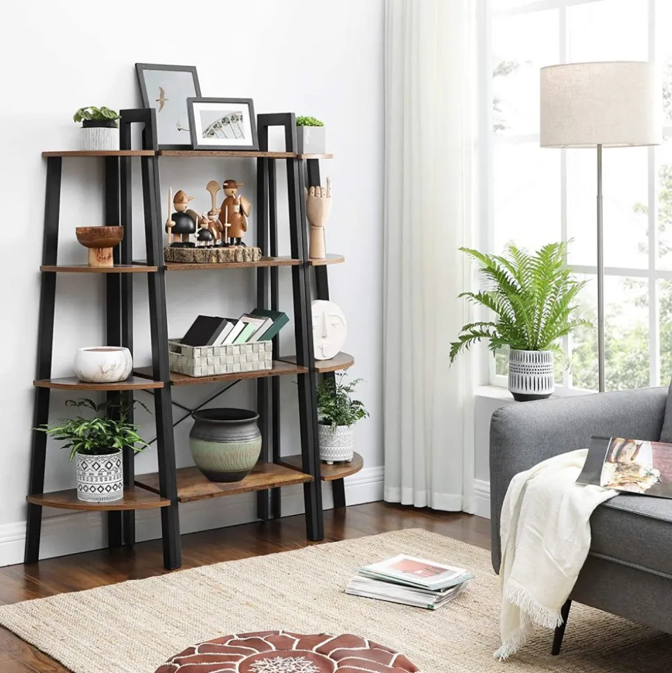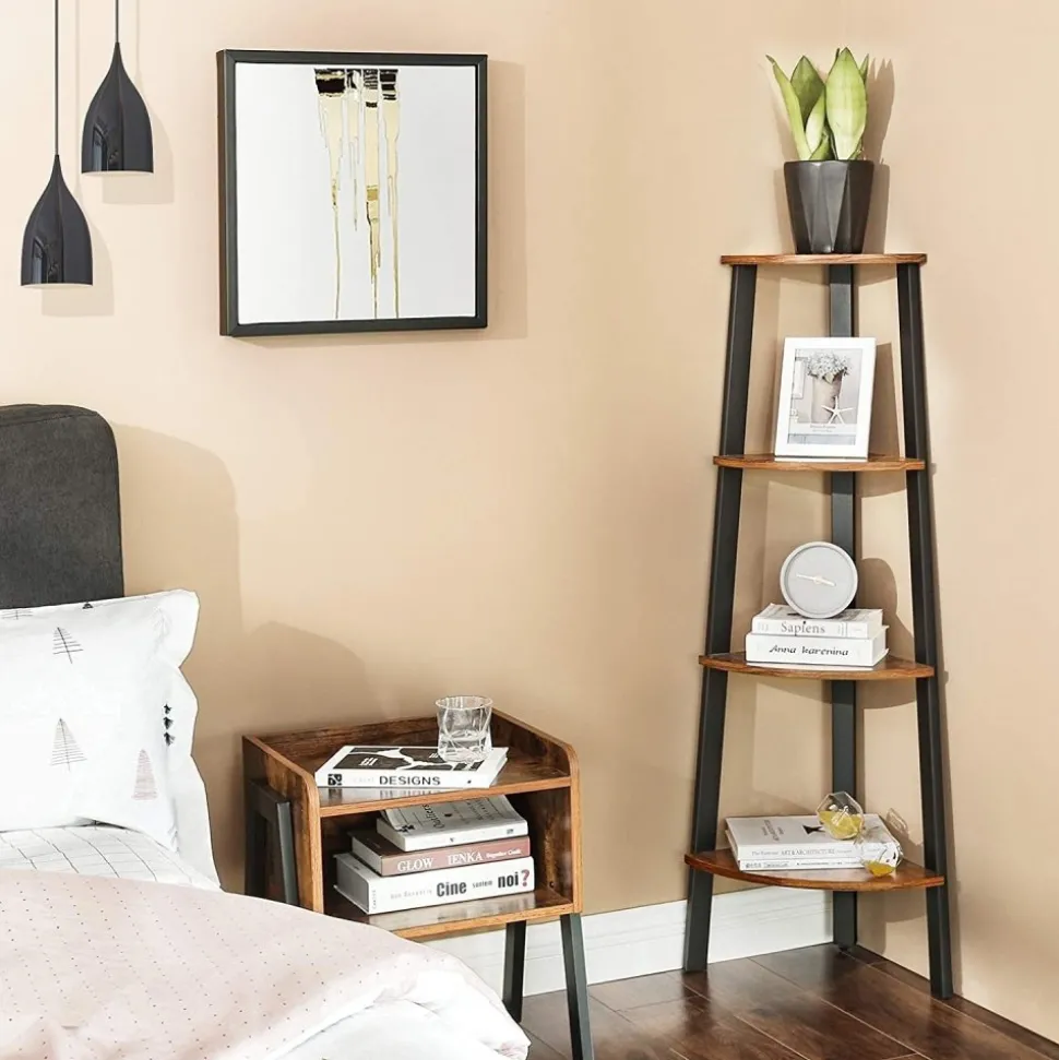 Denna kombinerar en svart stålram med hyllplan i brun träfinish, vilket skapar en snygg och modern look. Perfekt för dig som vill ha en trendig och funktionell inredningsdetalj.