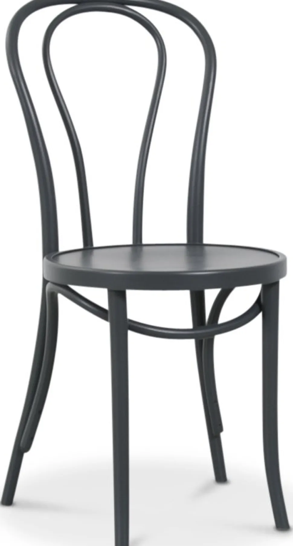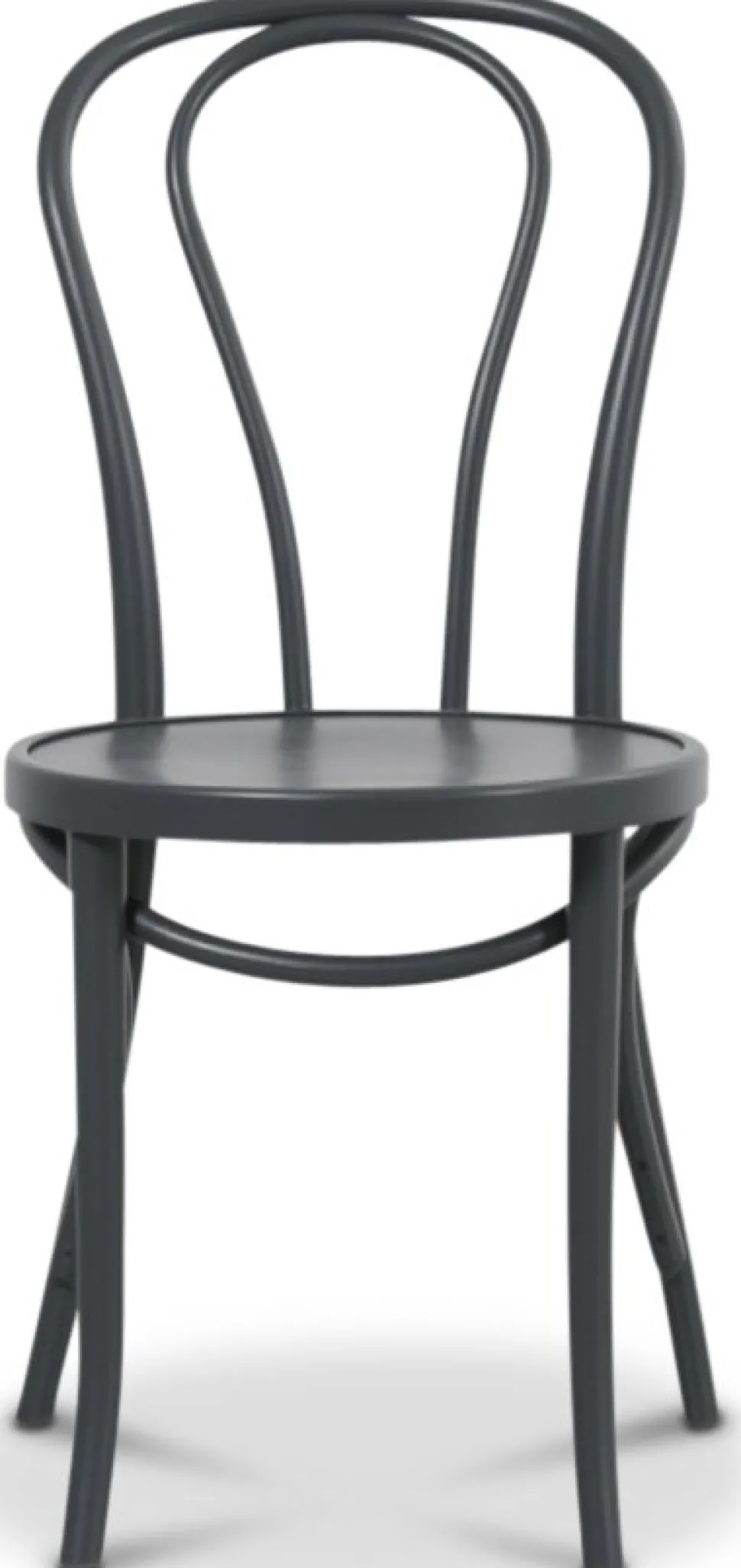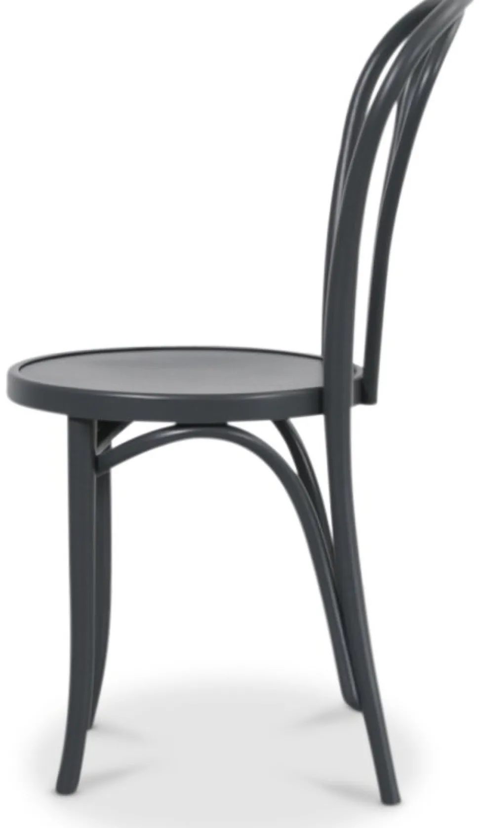 Den klassiska Stolen No18 i en mörkgrå lack. Stolen byggs i Europa utav en av de främsta stolstillverkarna i världen. Högsta kvalitét för både hemmamiljö och offentlig miljö. Trästommen böjs förhand i en kvalitetssäkrad och avancerad tillverkning för att stolen skall hålla en hel livslängd.