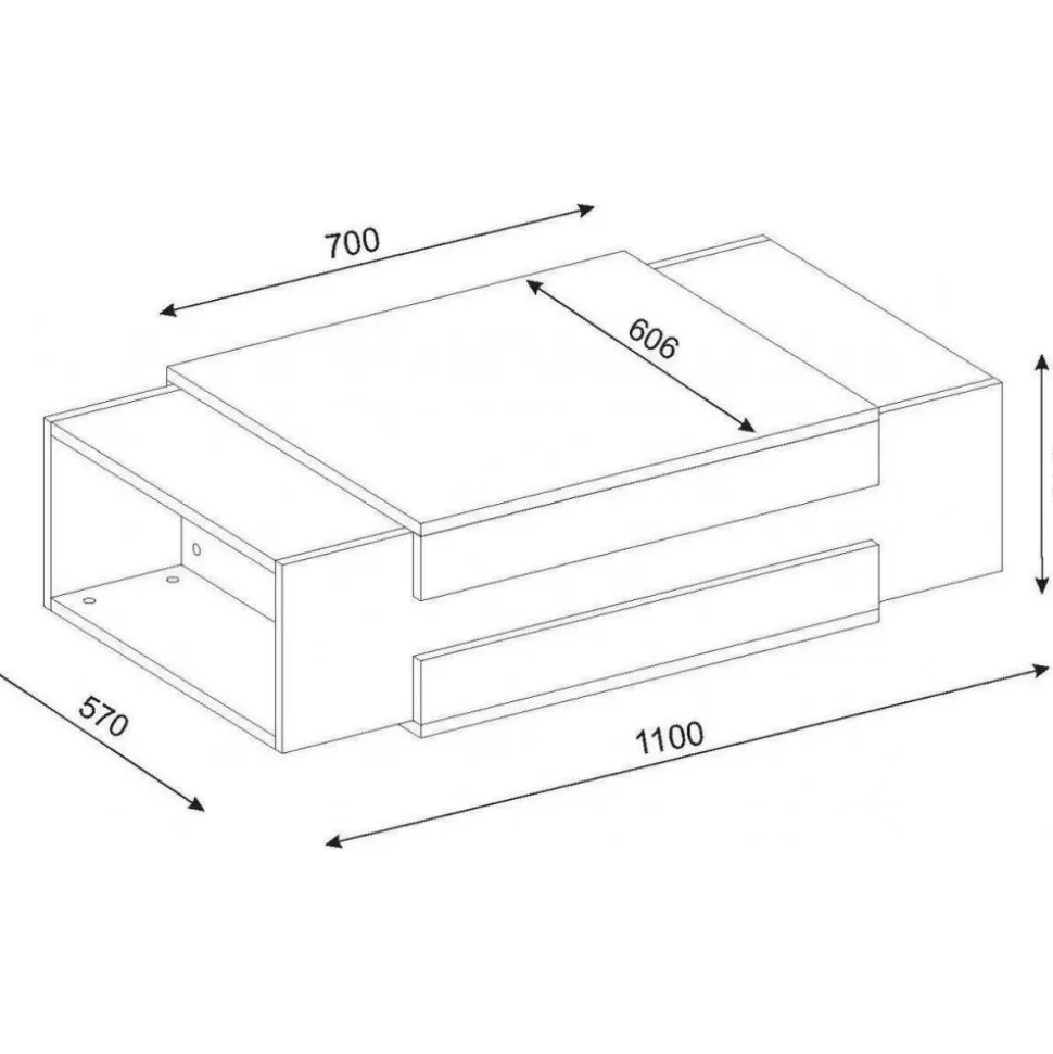 Soffbord av melaminbelagd spånskiva.