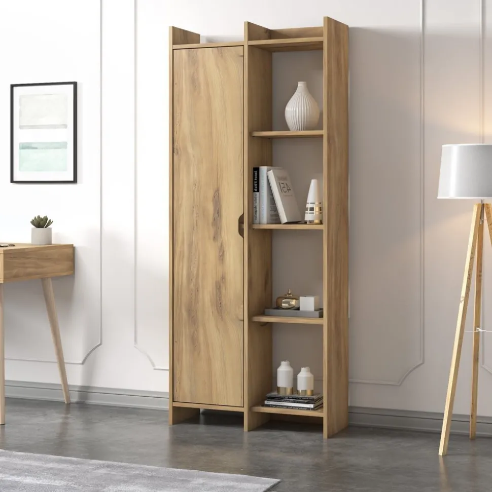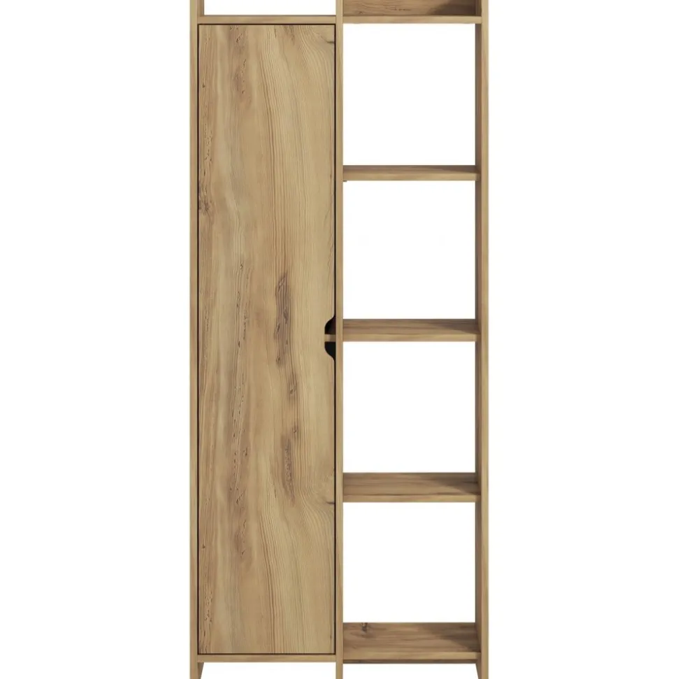 Bokhylla av melaminbelagd spånskiva.