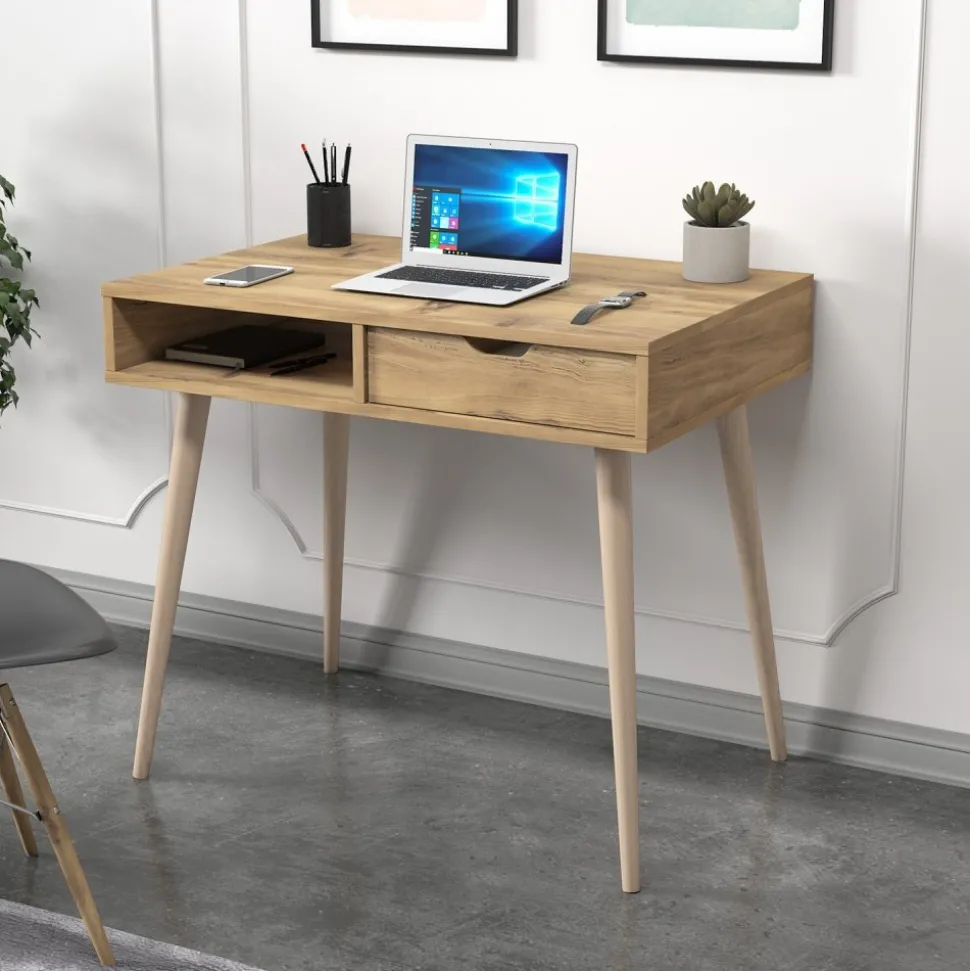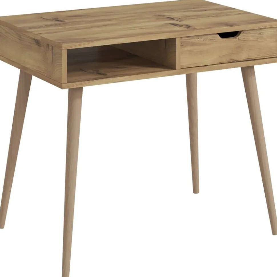 ?Skrivbord av melaminbelagd spånskiva.