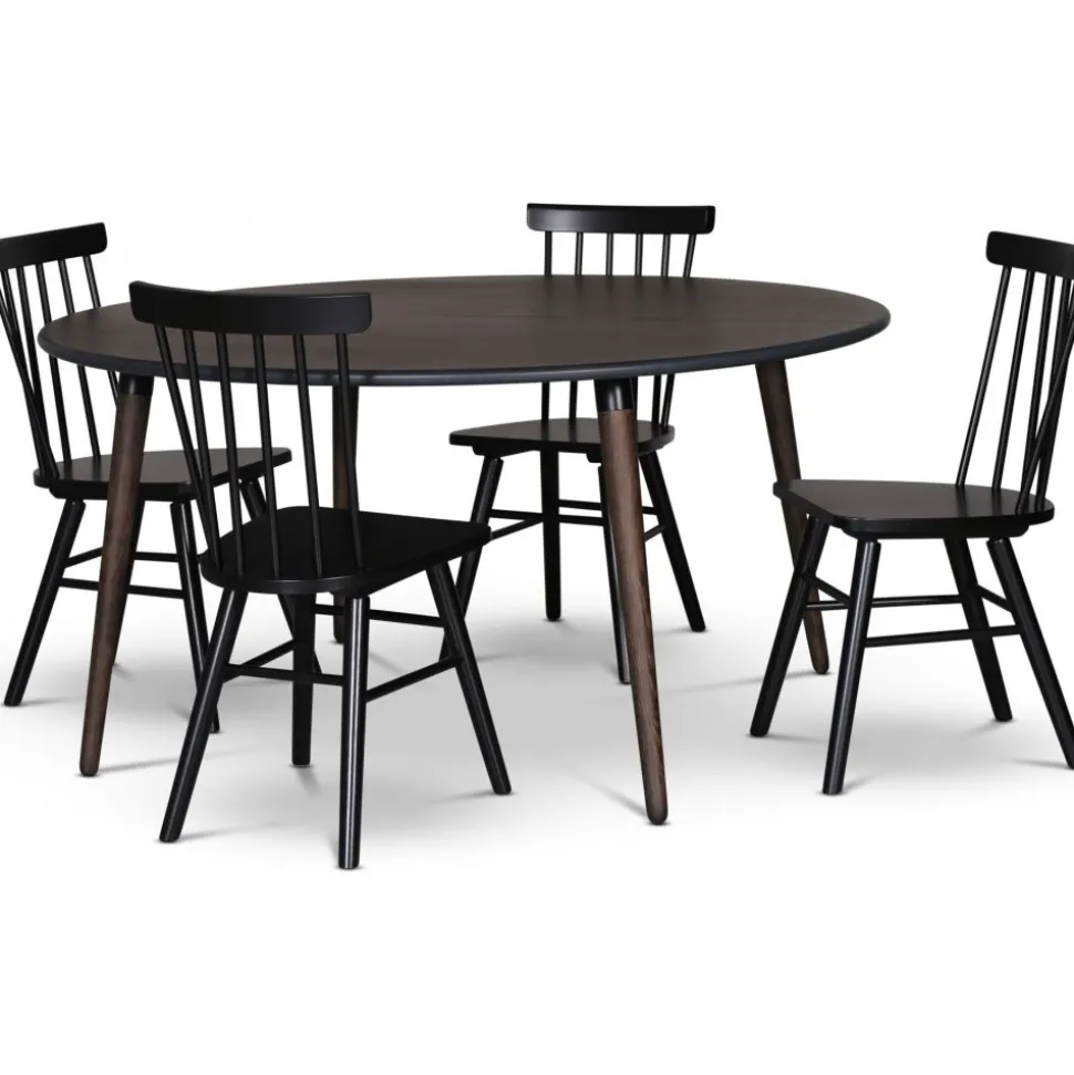 - Omni matgrupp, runt matbord Ø130 cm inkl 4 st Orust svarta pinnstolar – Rökfärgad ek