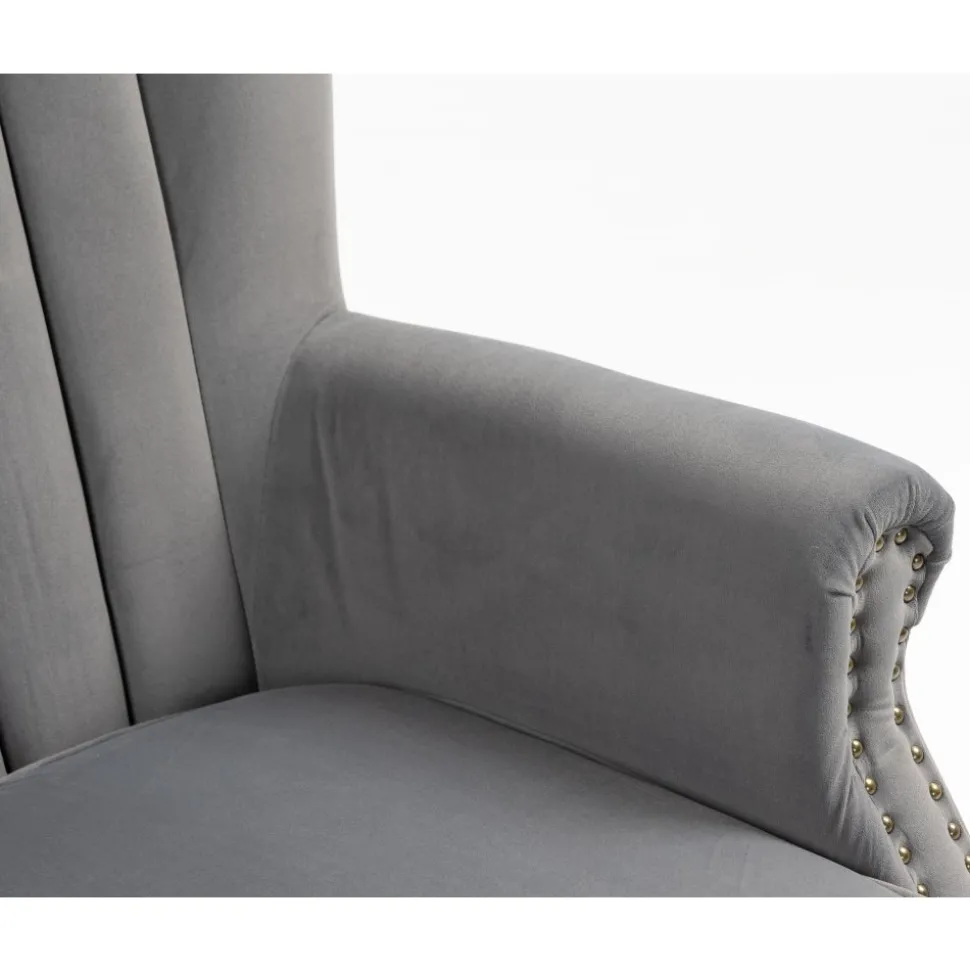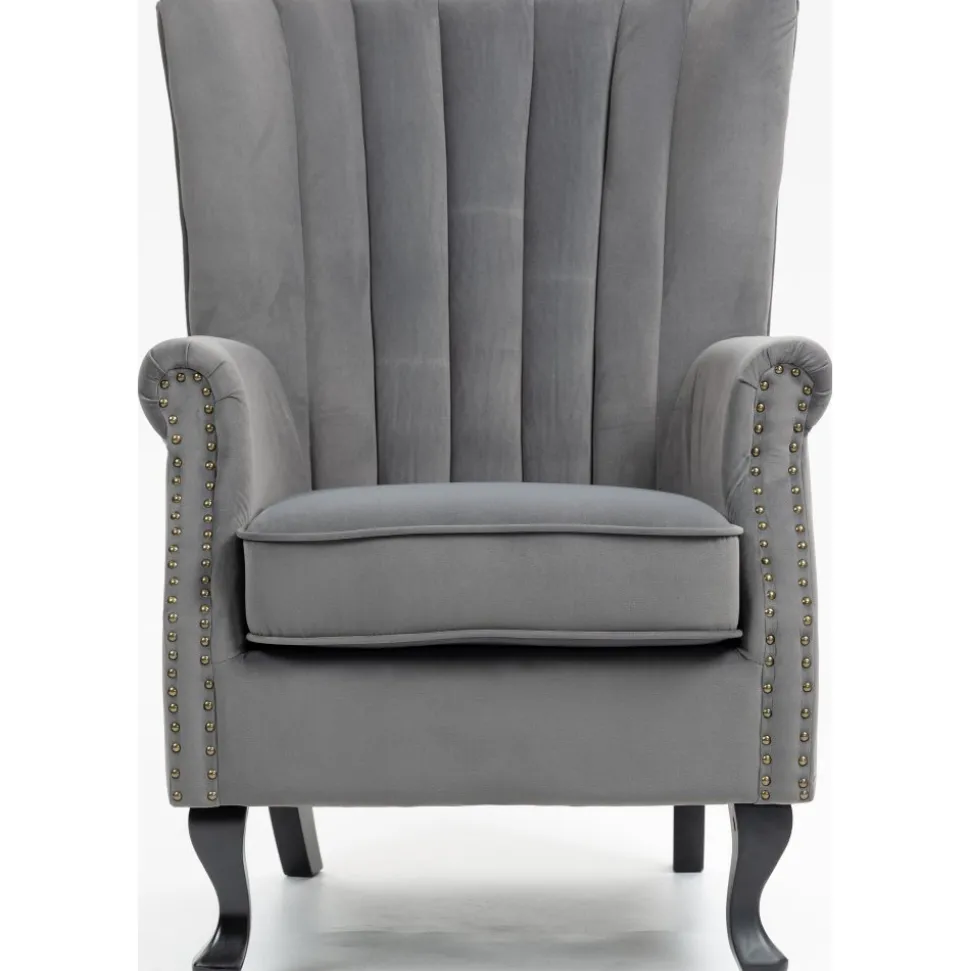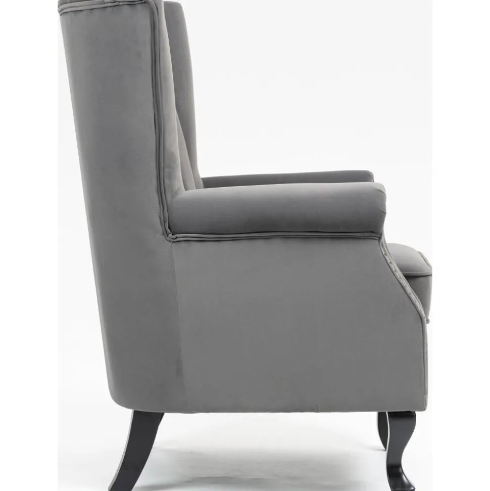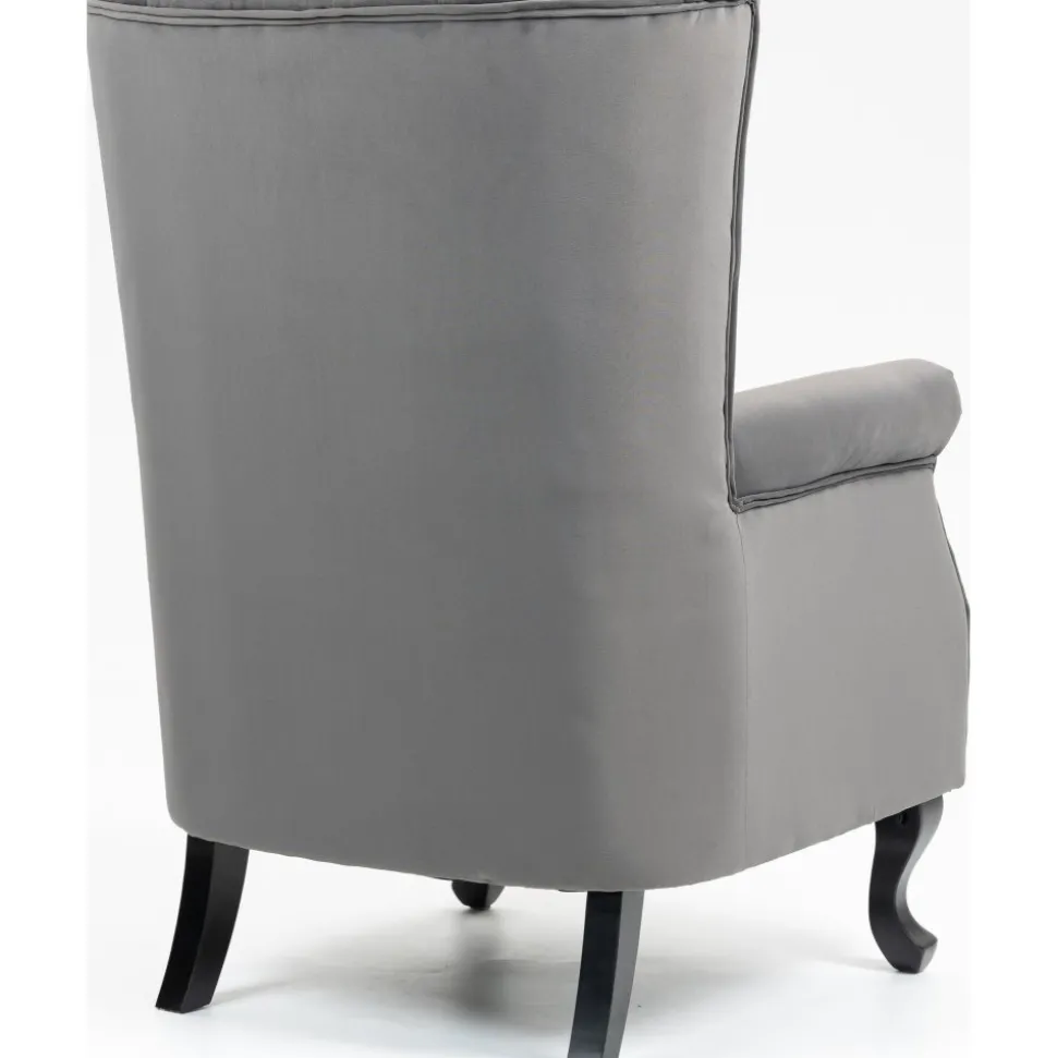 Ge ditt hem en touch av elegans och komfort med Rutil öronlappsfåtölj. Denna fantastiska är designad för att erbjuda både stil och avkoppling, vilket gör den till ett utmärkt val för alla rum i huset. Det grå sammetstyget ger fåtöljen en lyxig känsla och en rik färg som kommer att lysa upp ditt utrymme. Öronlapparna ger inte bara en klassisk charm, utan erbjuder också extra stöd och avskildhet, vilket gör den idealisk för avkoppling med en bok eller för att njuta av ditt favoritprogram.