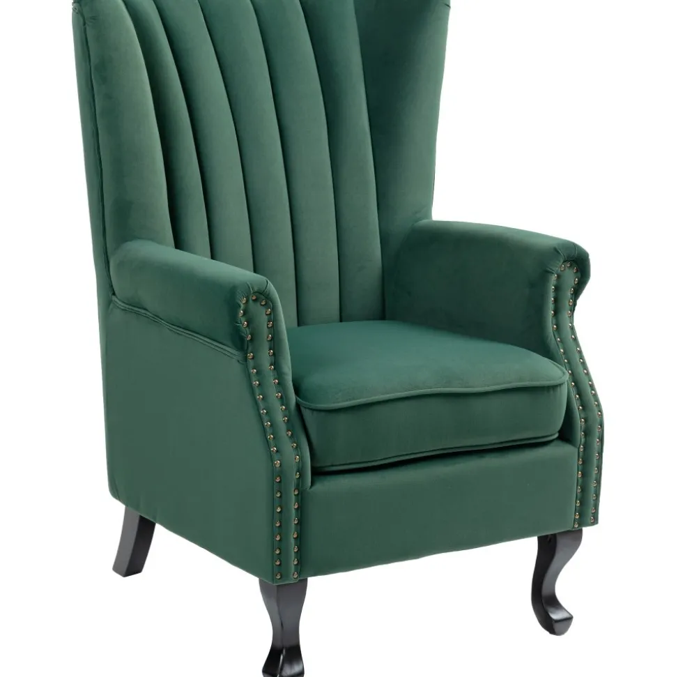 Ge ditt hem en touch av elegans och komfort med vår Rutil grön öronlappsfåtölj. Denna fantastiska är designad för att erbjuda både stil och avkoppling, vilket gör den till ett utmärkt val för alla rum i huset. Den djupgröna sammetstyget ger fåtöljen en lyxig känsla och en rik färg som kommer att lysa upp ditt utrymme. Öronlapparna ger inte bara en klassisk charm, utan erbjuder också extra stöd och avskildhet, vilket gör den idealisk för avkoppling med en bok eller för att njuta av ditt favoritprogram.