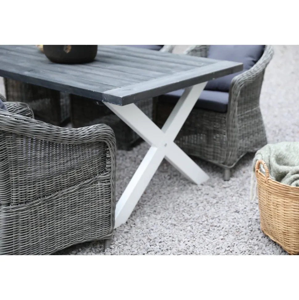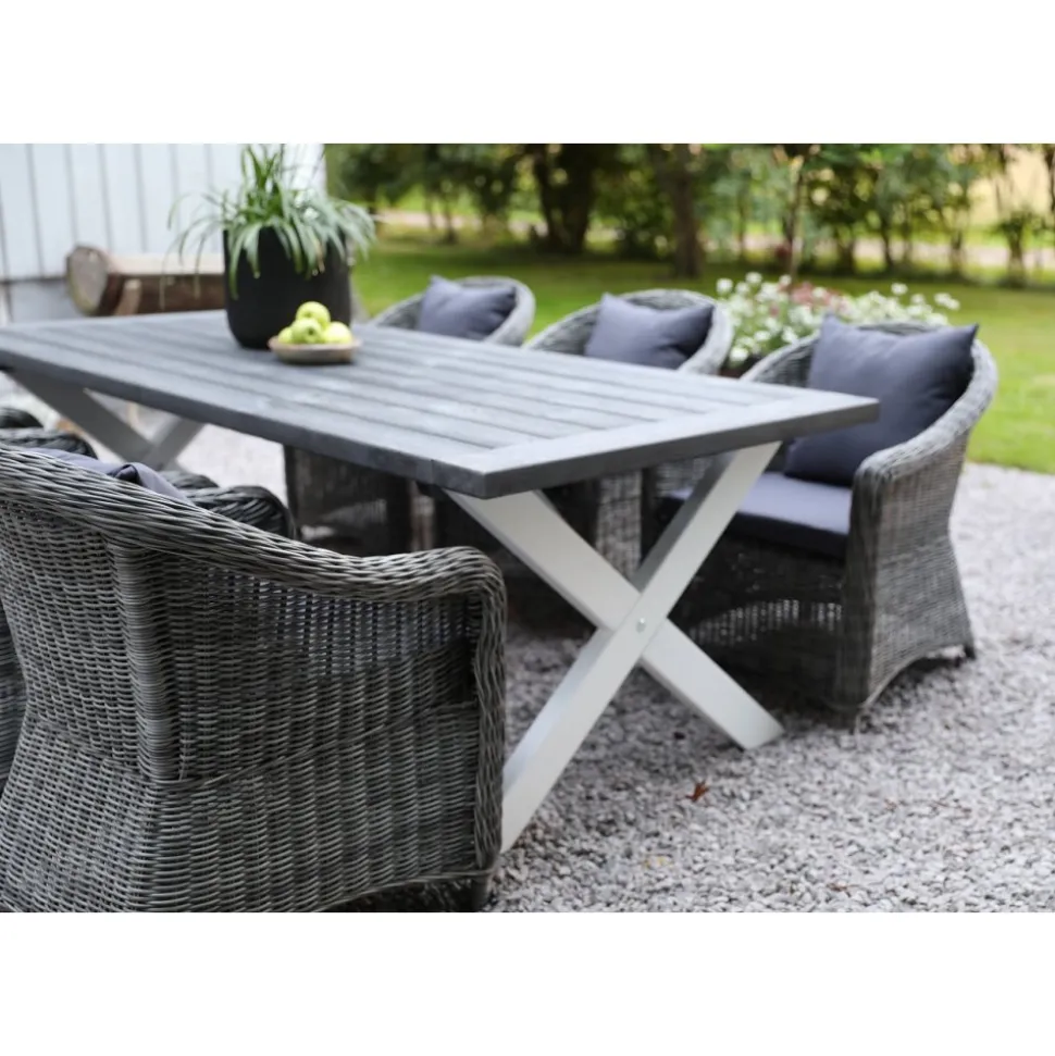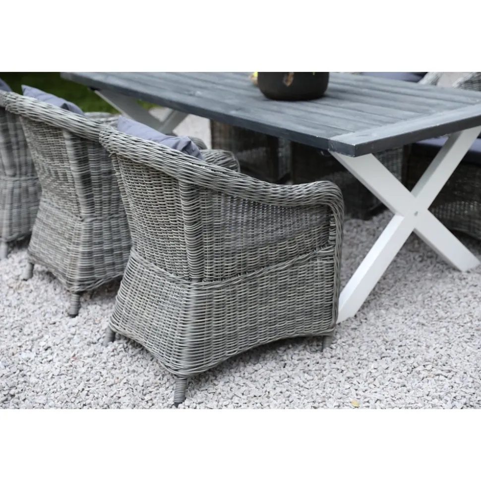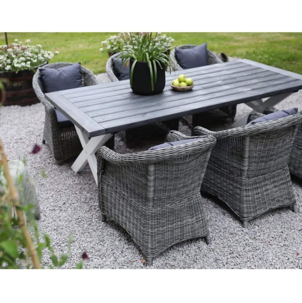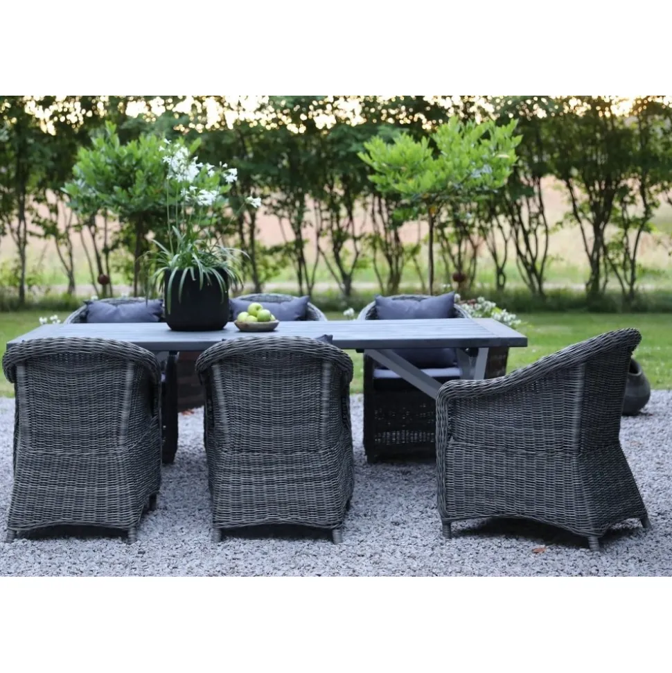 Inklusive 6 st Mercury fåtöljer i matchande grå konstrotting med sittdyna och ryggdyna för bästa komfort. Matgruppen passar perfekt på altanen, uteplatsen och i uterummet.