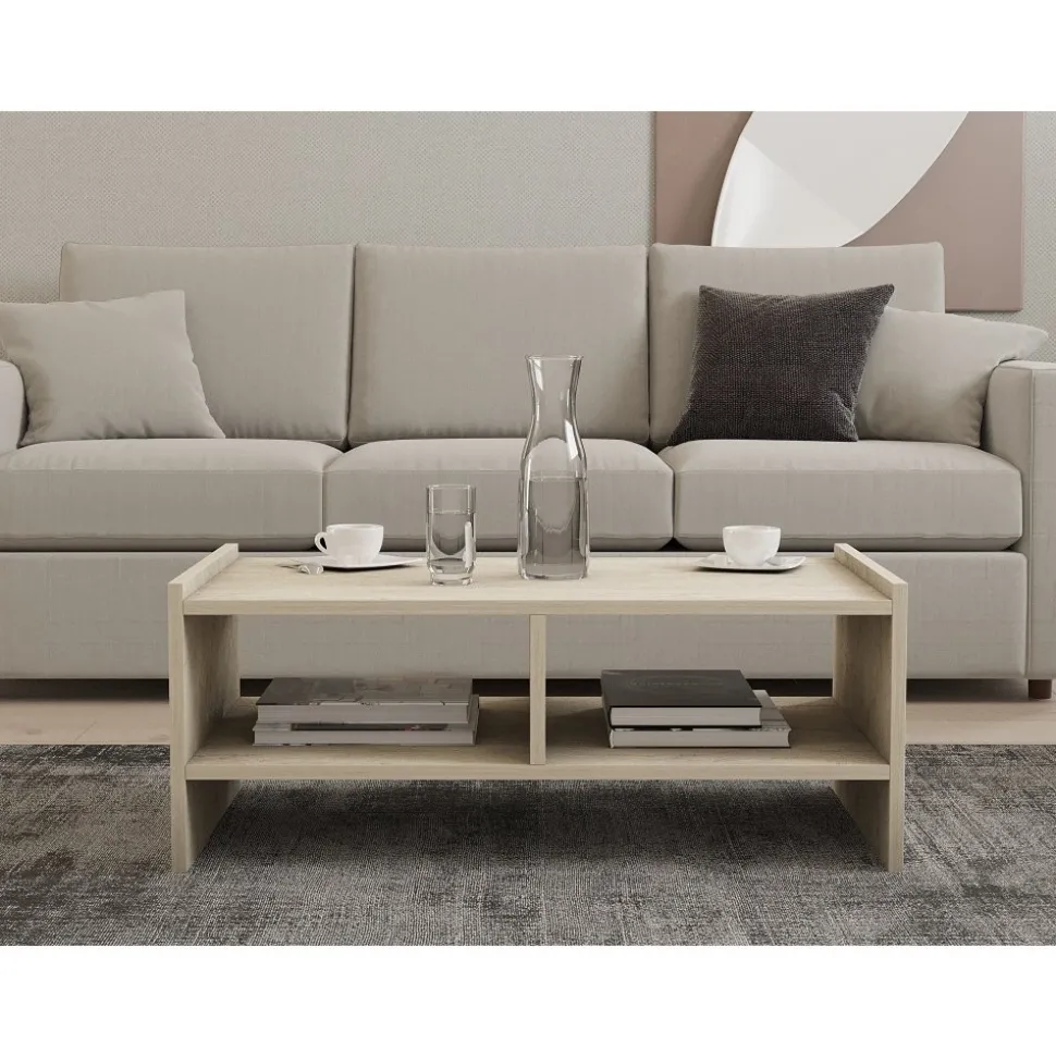 Soffbord av melaminbelagd spånskiva.
