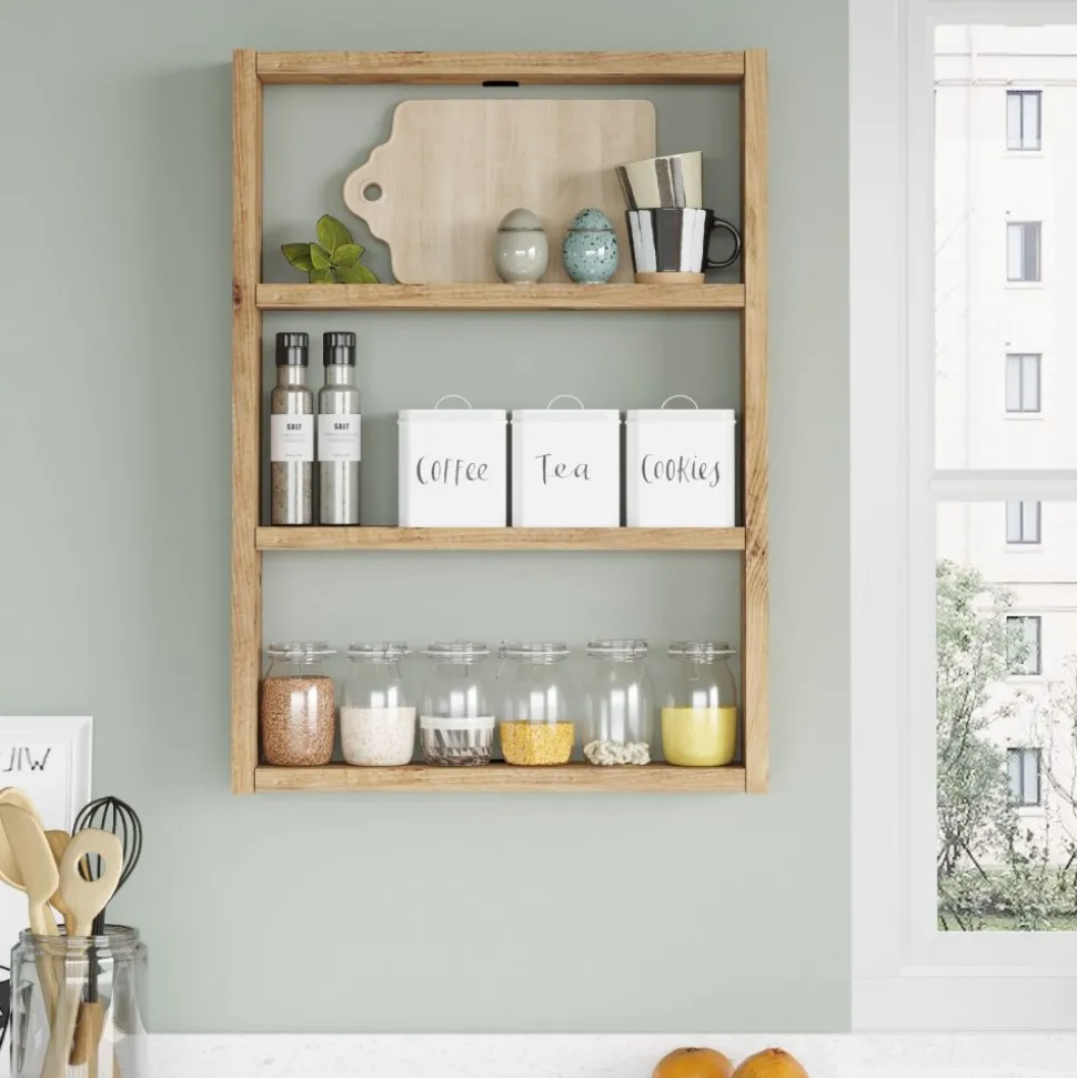 Vägghylla av spånskiva.