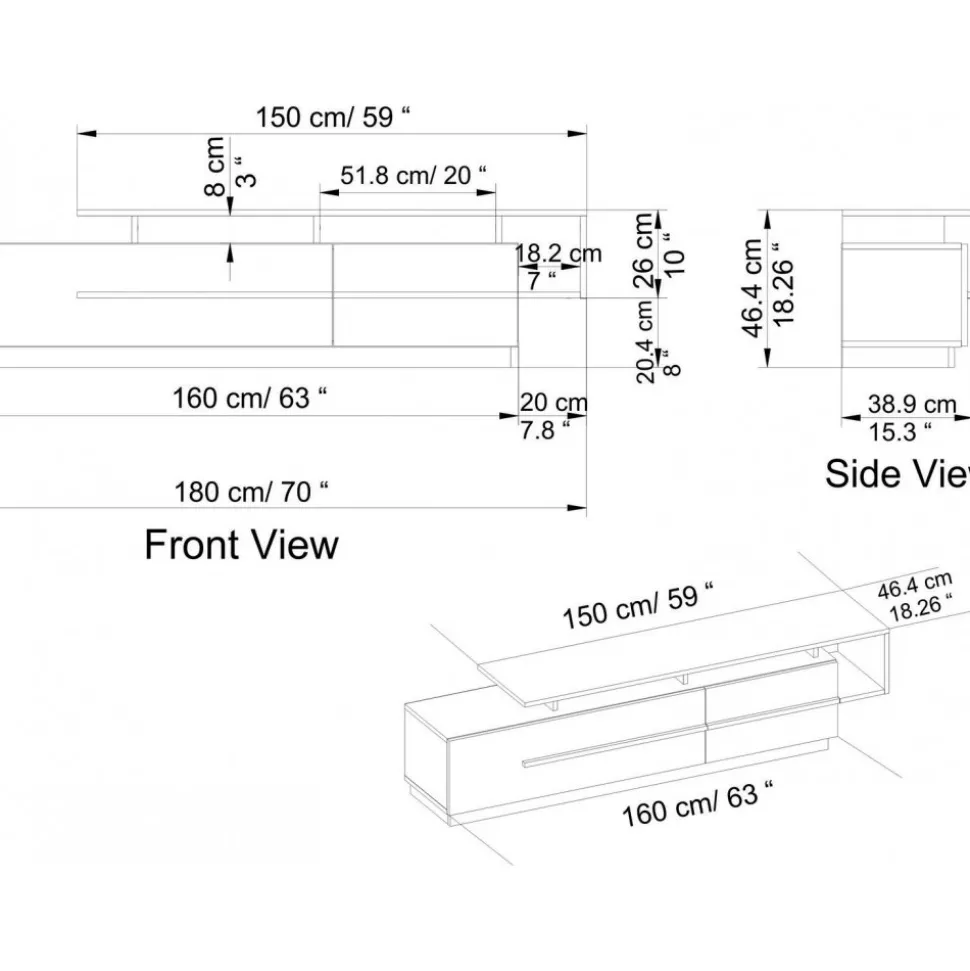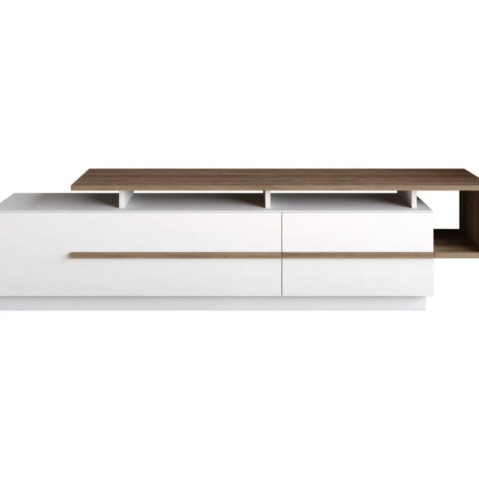 Mediabänk av melaminbelagd spånskiva.