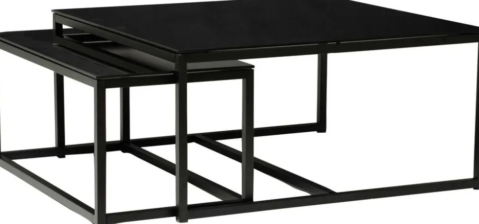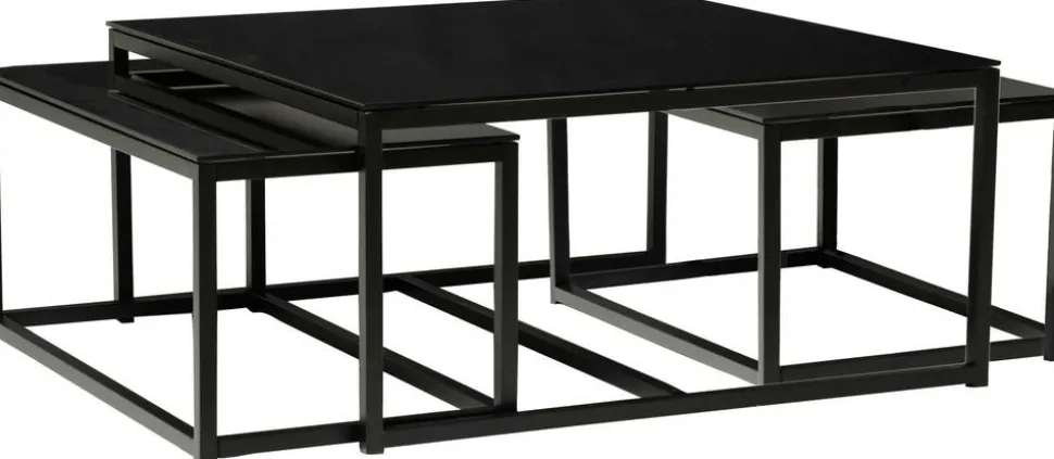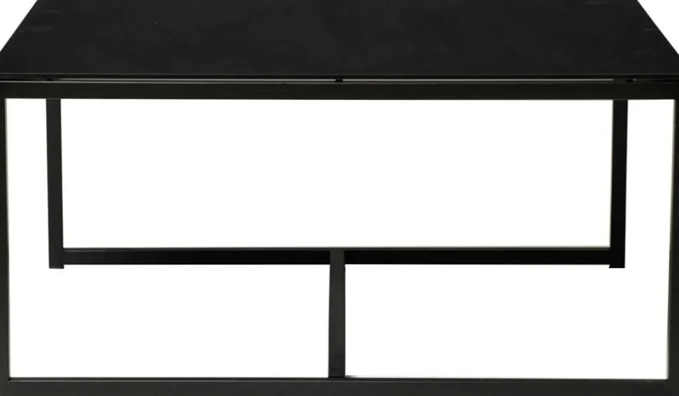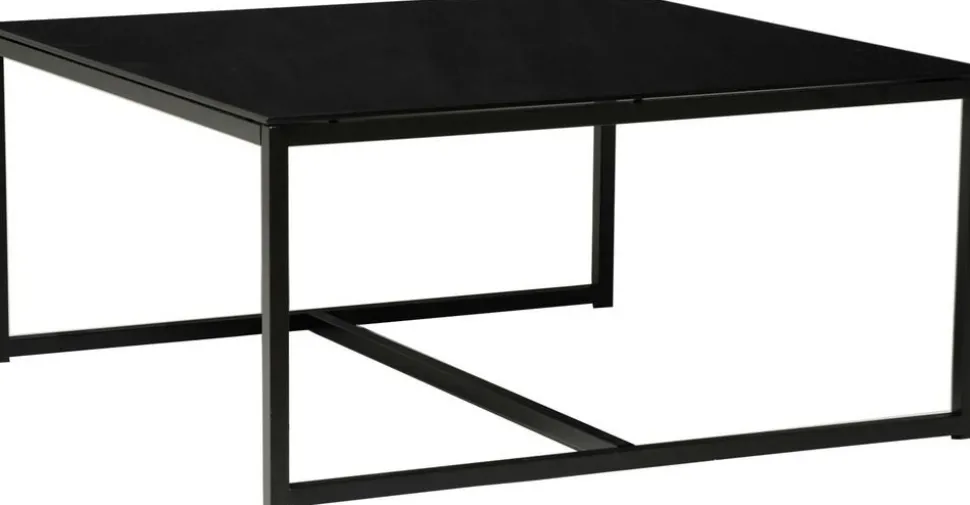Kvadratiskt med toppskiva av svart glas och underrede av svart metall. Finns även i rektangulärt format i samma serie.