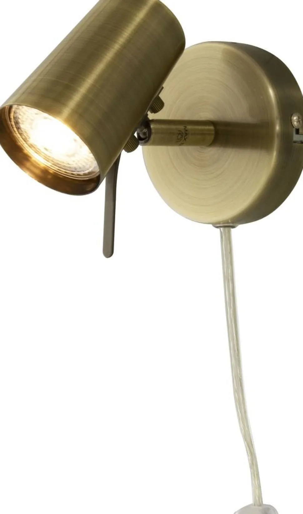 Väggspotlight i metall med antik mässings utförande. Monteras lätt på väggen.