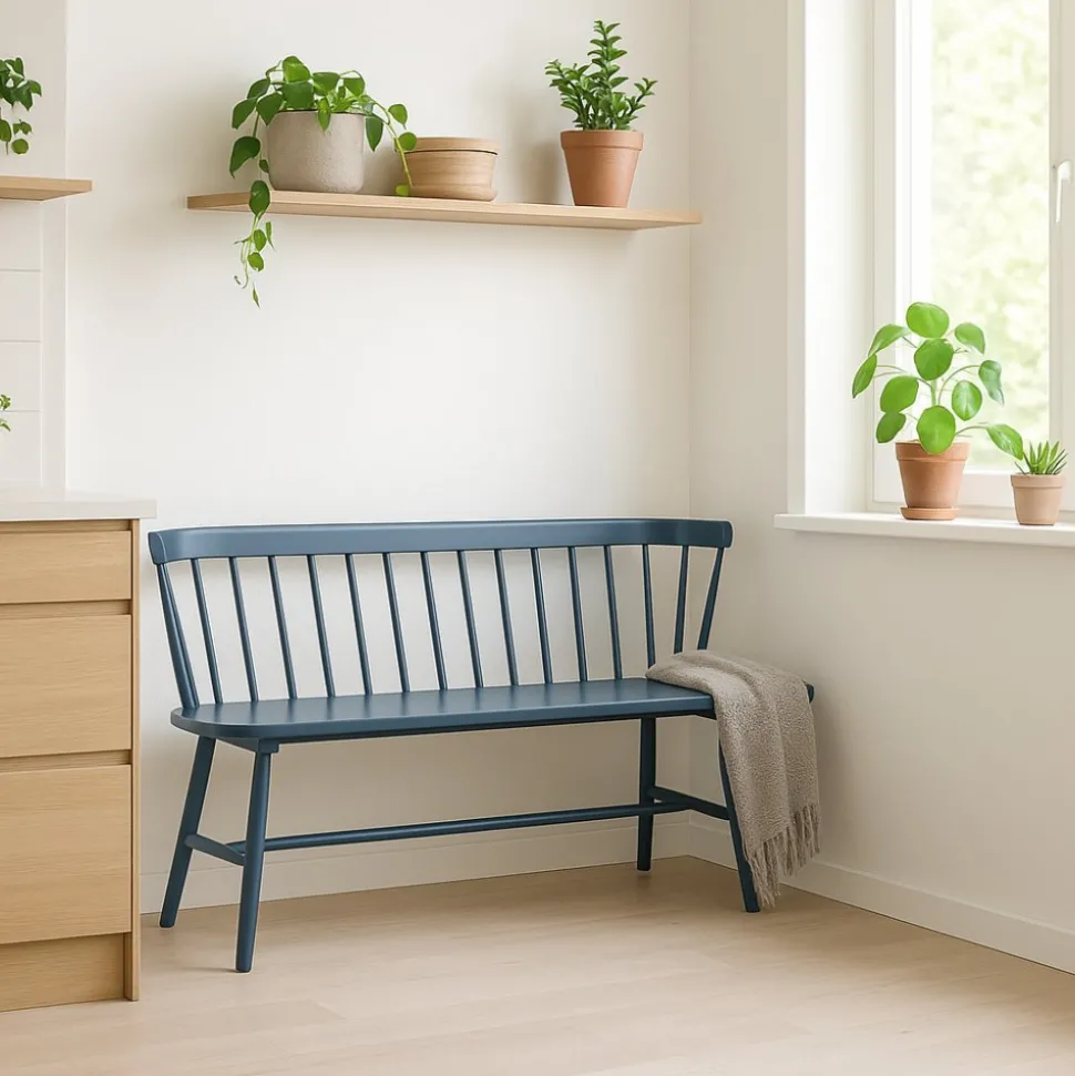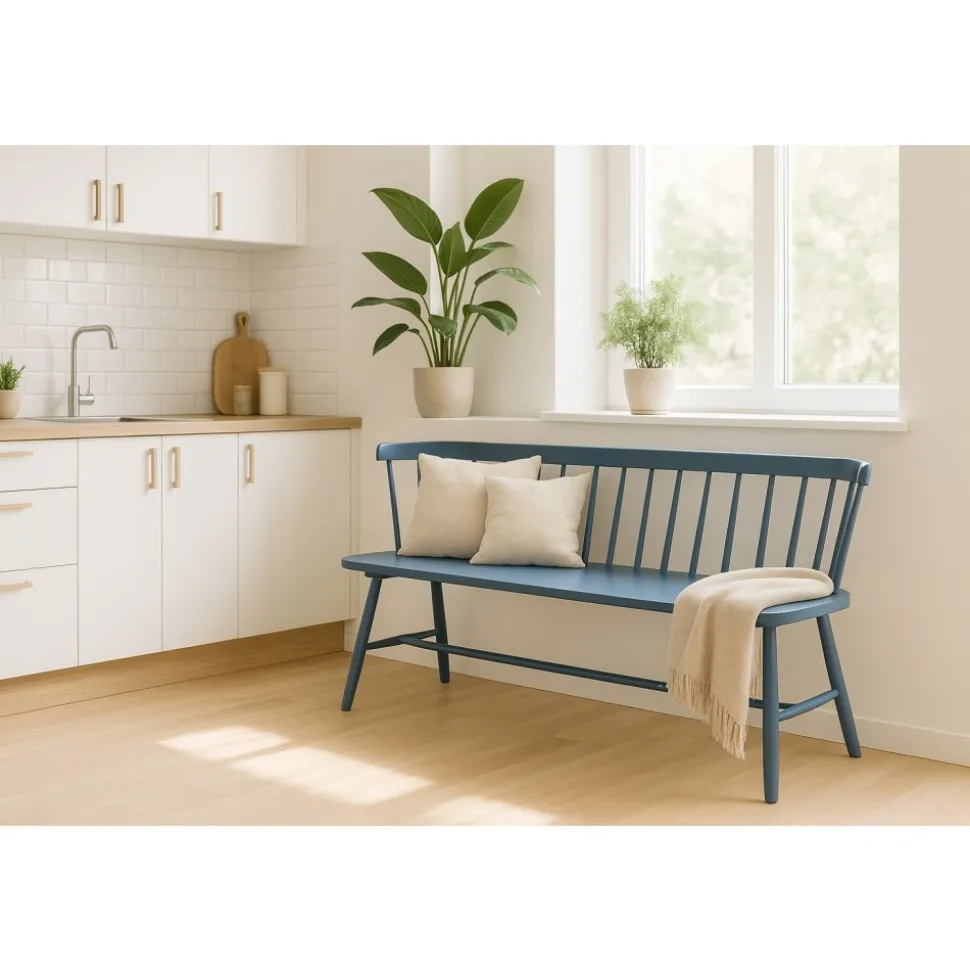 Klassisk blå pinnsoffa i massivt trä med tidlös retrodesign. Den välkända modellen med raka pinnar i ryggen och en slät sits skapar en luftig och stilren känsla. Sandhamn pinnoffa passar lika bra i hallen som i köket, uterummet eller på en veranda. Tillverkad i slitstarkt heveaträ och lackerad i färgkod RAL5007 för en djup, vacker blå nyans som håller över tid.